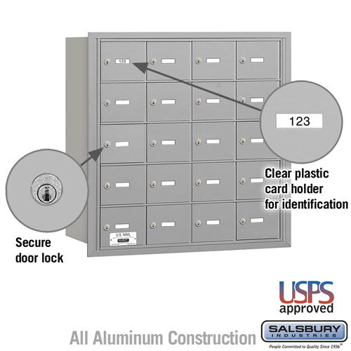 4B+ Horizontal Mailbox with 20 A Doors, Rear Loading, USPS Approved