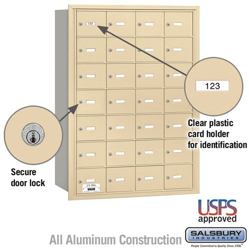 4B+ Horizontal Mailbox with 28 A Doors, Sandstone Finish, Rear Loading, USPS Approved