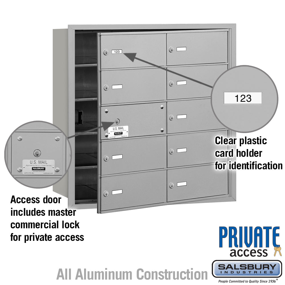 4B+ Horizontal Mailbox with Master Lock - 10 B Doors - Aluminum - Front Loading - Private Access
