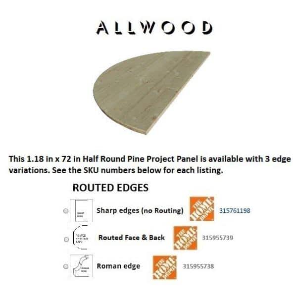 5/4 in. x 3 ft. x 6 ft. Allwood Half Round Pine Project Panel Table Top with Classic Roman Edge