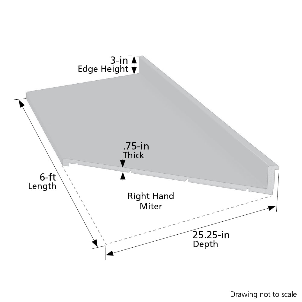 Q: What are the actual dimensions? A: 72-in length x 25.25-in depth with a 0.75-in thick deck and an integrated 3-in backsplash.