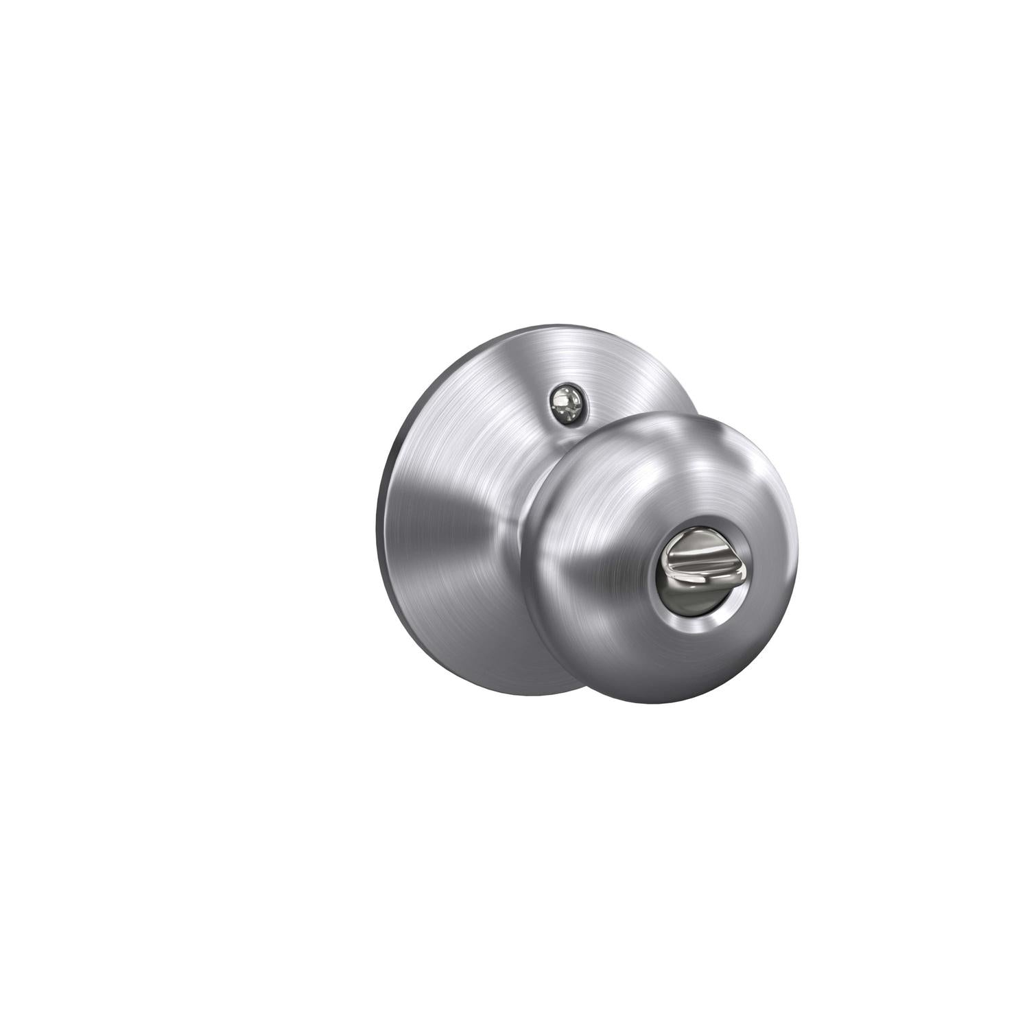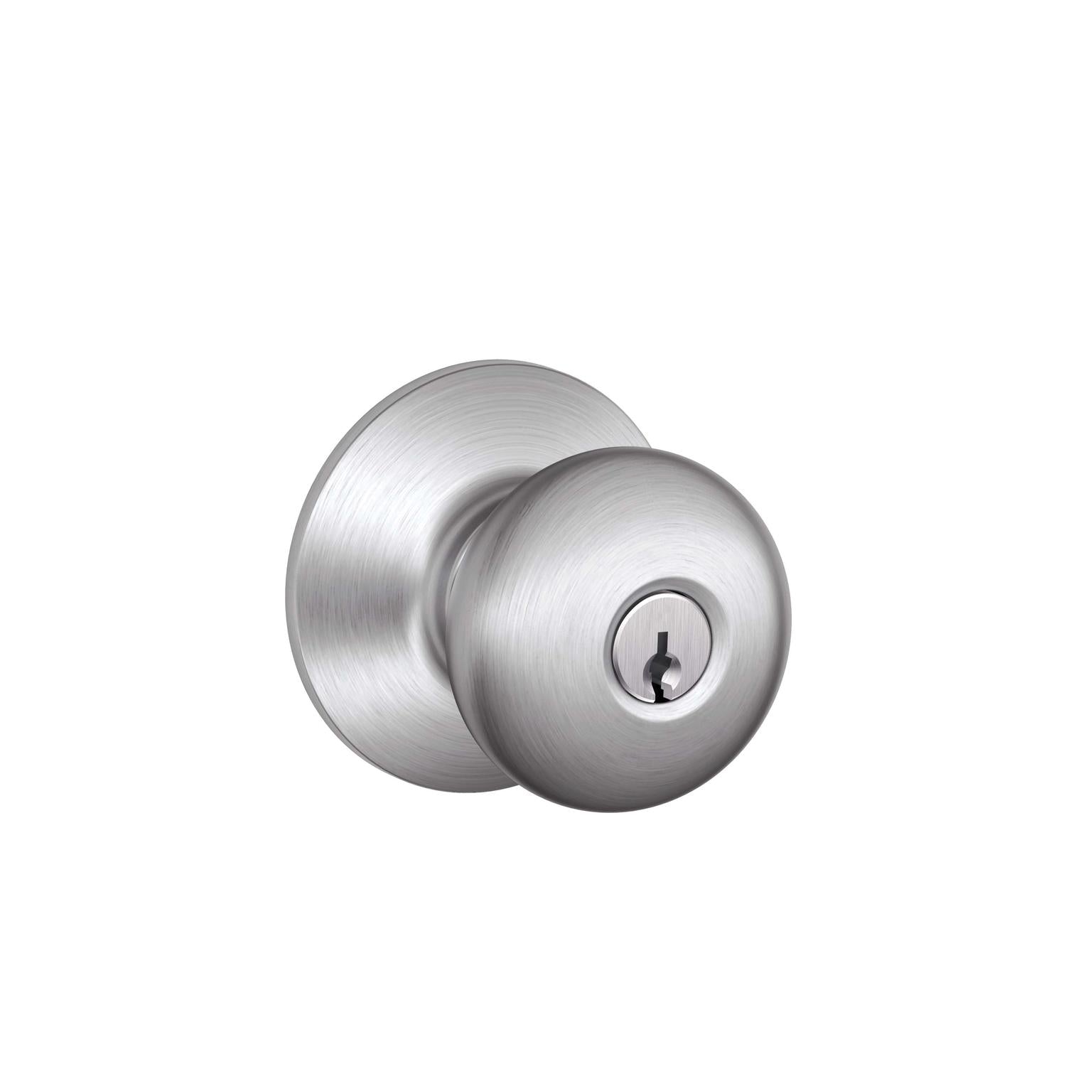 Secure your entry with the Schlage Plymouth keyed knob in satin chrome, built to ANSI Grade 2 standards for dependable residential or light commercial use. It fits standard pre-drilled doors and installs easily with a Phillips screwdriver, offering universal latches and inside turn-button convenience.