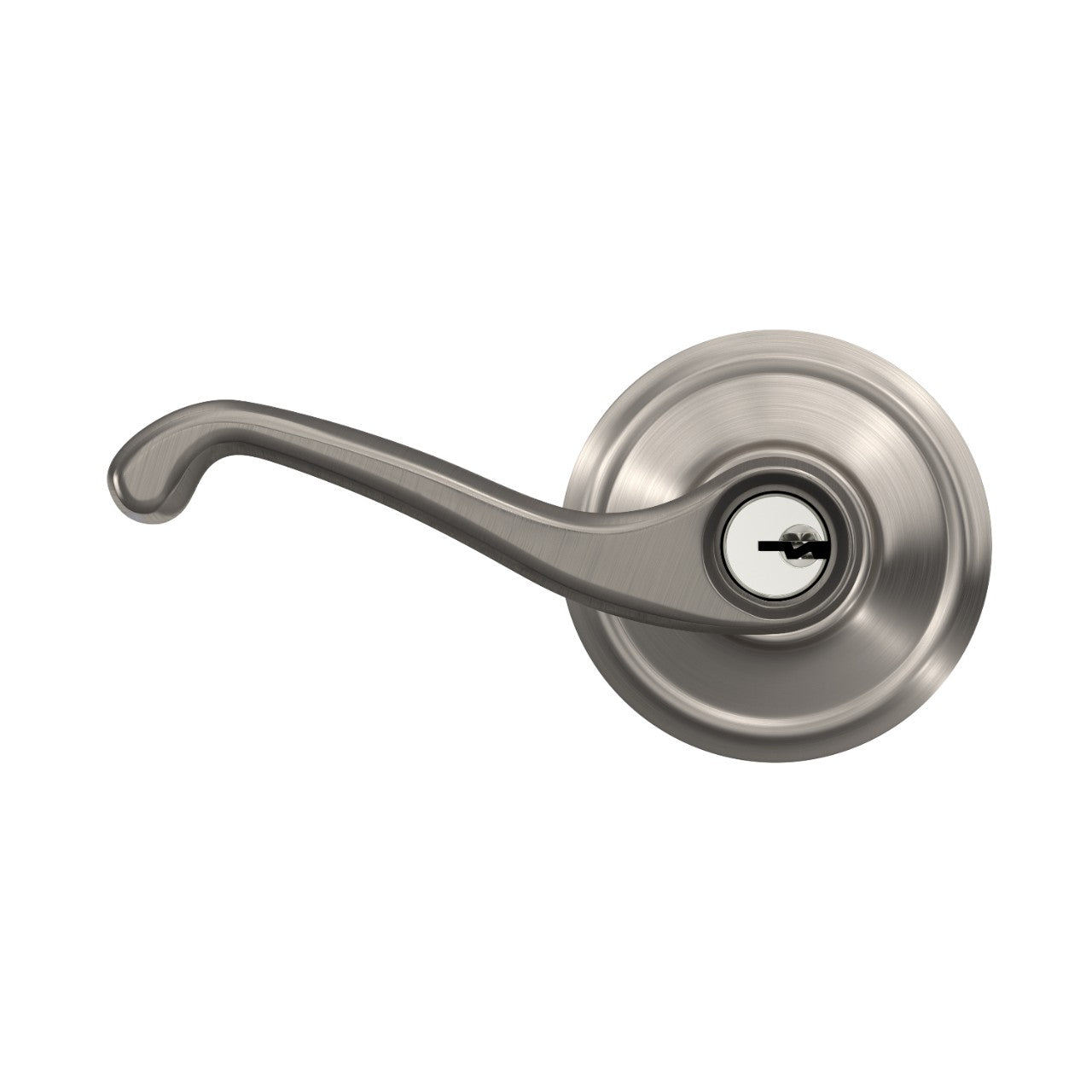 The Schlage Flair keyed entry lever delivers dependable Grade 2 security with classic styling in a bright brass finish. Designed for standard residential doors, it fits 1-3/8 in. to 1-3/4 in. thickness and adjusts to common backsets for easy installation.