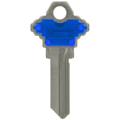 Durable brass key blank designed for Schlage residential locks. The traditional wide head with color insert offers a secure grip and easy identification for house or office keys.