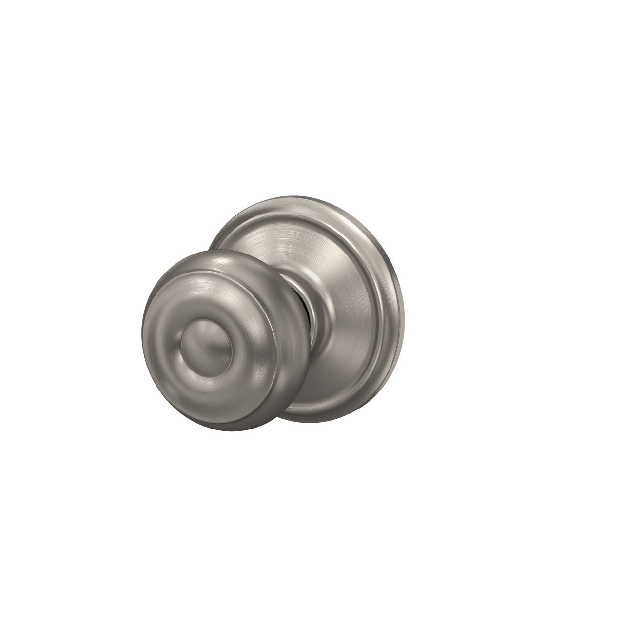 Upgrade interior doors with the Schlage Georgian passage lockset in Antique Brass. This non-locking hall and closet knob features premium metal construction and Grade 2 durability, fitting standard doors for quick, screwdriver-only installation.