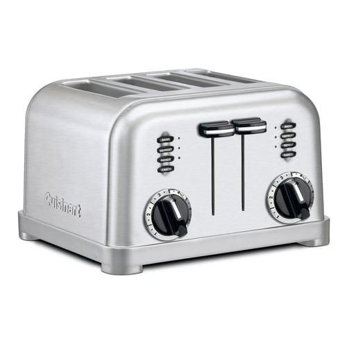 The Cuisinart 4-Slice Stainless Steel Toaster offers custom controls for defrosting and toasting four slices of bread or bagels at a time. Its sleek, brushed stainless housing with polished chrome and black accents add a touch of elegance to any kitchen. With a 1-year extended warranty for products up to $250, this bundle includes everything you need for the perfect toast. Other features include 6 browning settings, LED indicator lights, and an extra-lift carriage lever for easy removal of smaller items. Keep your counter clean with the slide-out crumb tray and refer to the included instruction book for any questions.