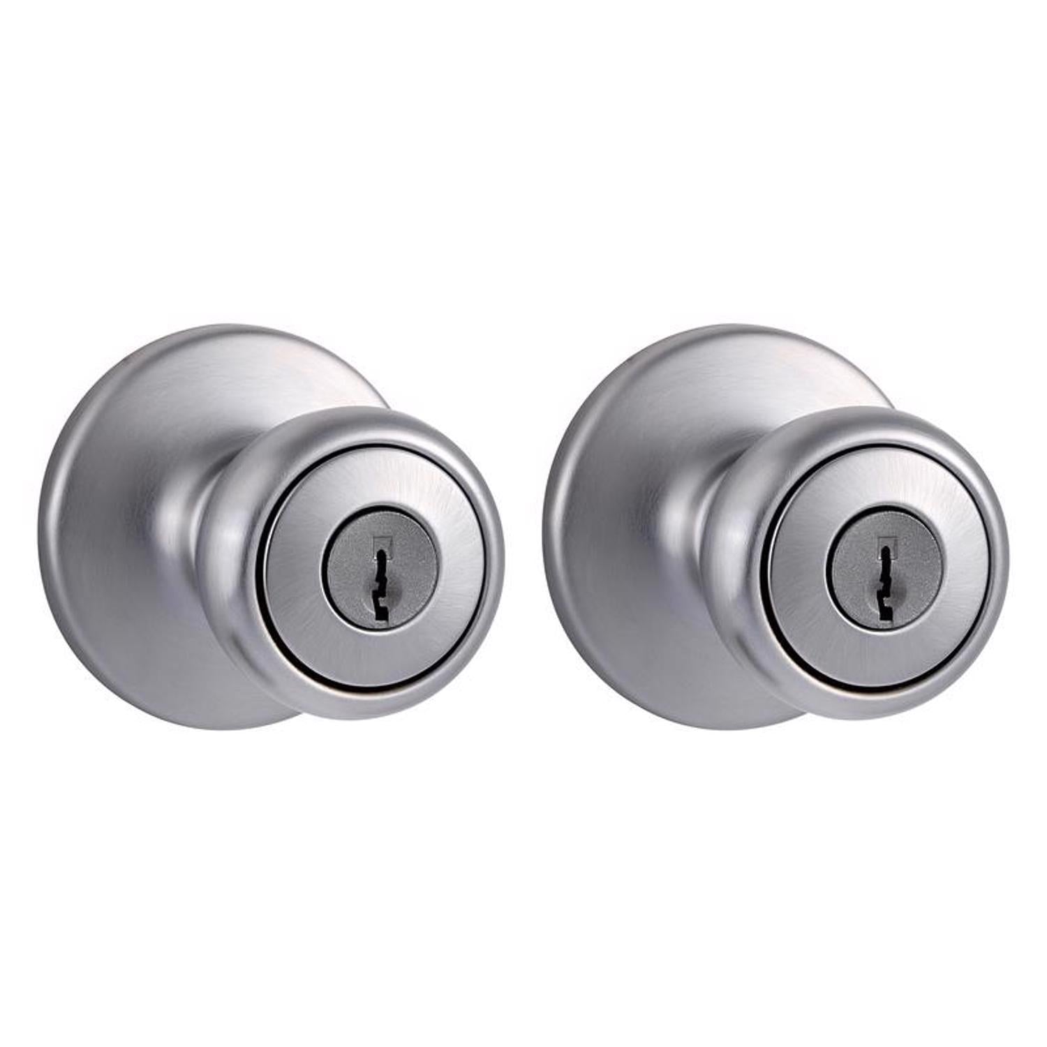 Kwikset Tylo Satin Chrome Entry Knobs, ANSI/BHMA Grade 3, 1-3/4 in.