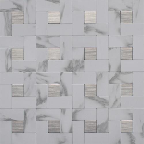 Instant Mosaic 6-Pack White and Brushed Stainless 12-in x 12-in Multi-Finish Metal Versailles Mosaic Peel & Stick Tile