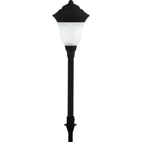 This Progress Lighting LED path light delivers 90 lumens of warm 3000K illumination in a durable, black powder-coated aluminum fixture. The low-voltage, plug-in design includes an integrated LED module, mounting stake, and cable connector for quick, reliable installation along walkways and garden beds.