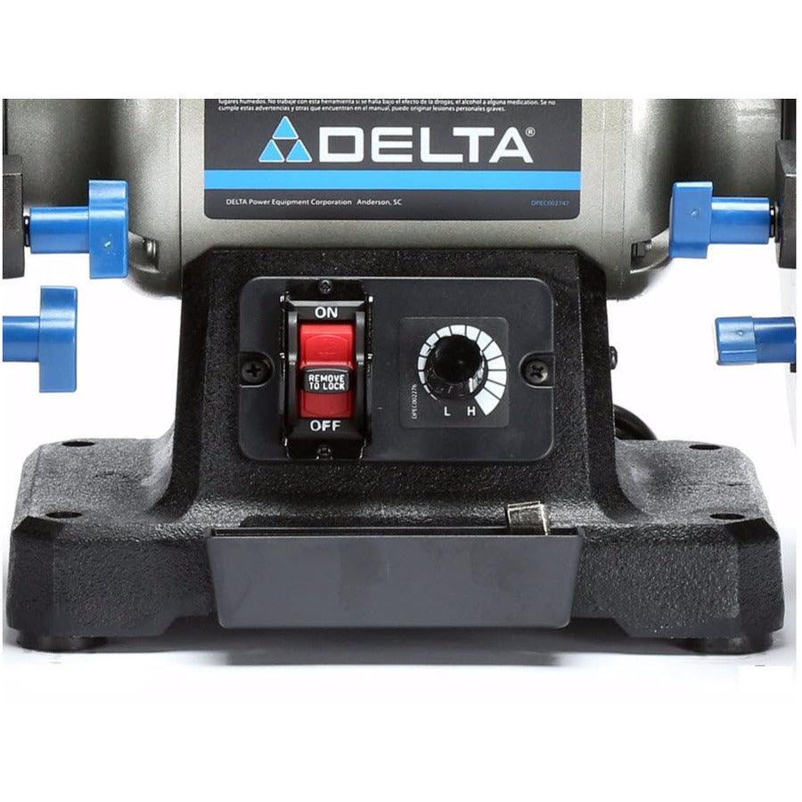 Delta 8-in bench grinder with light features 36 and 60 grit wheels for a variety of grinding operations