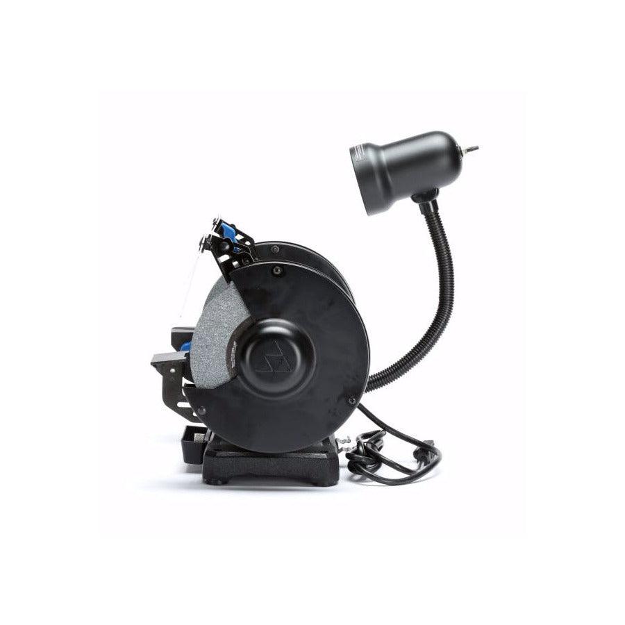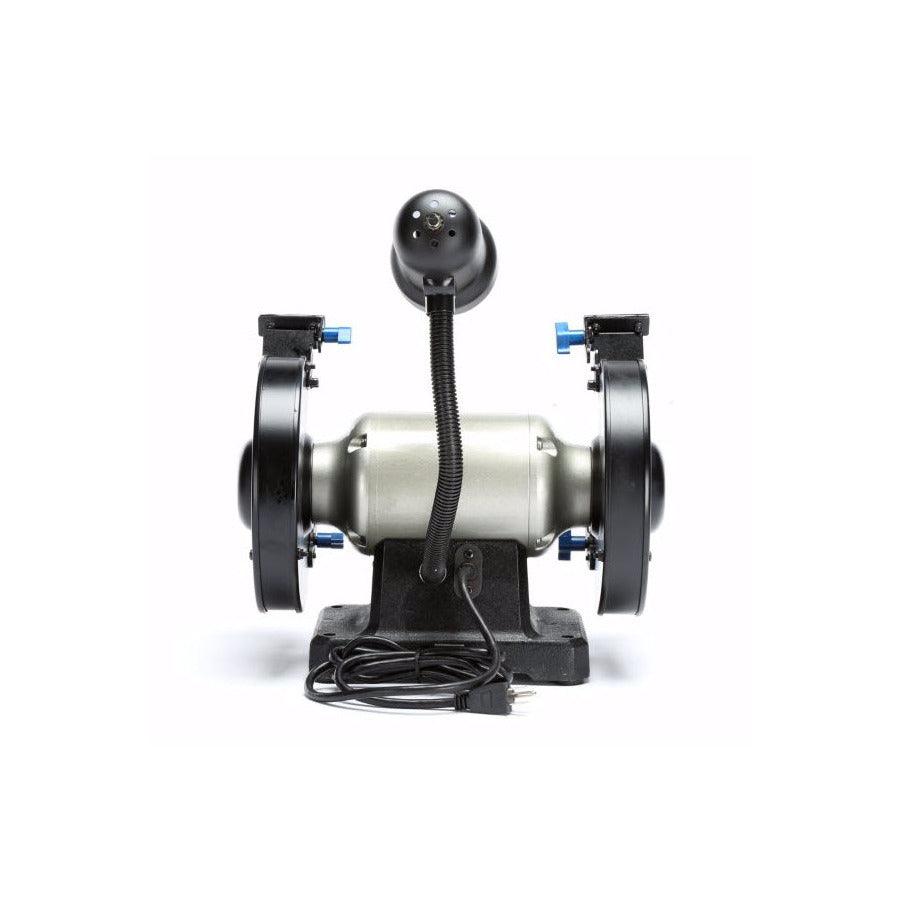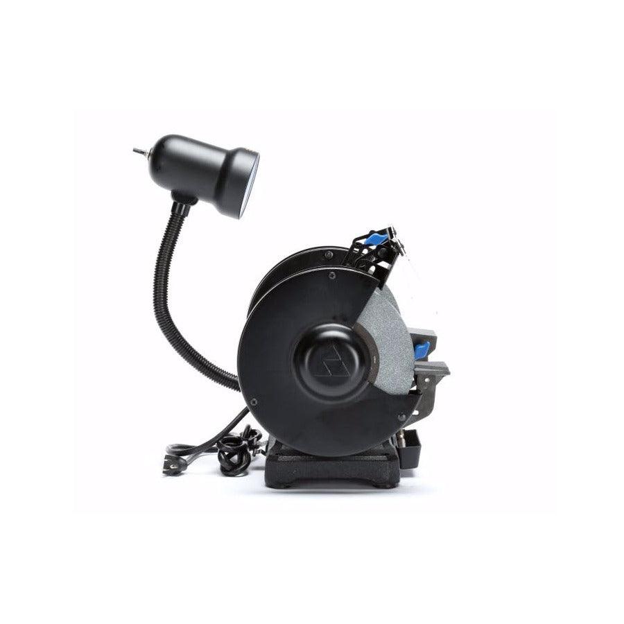 Includes eye shields, removable water tray and wheel dressing tool