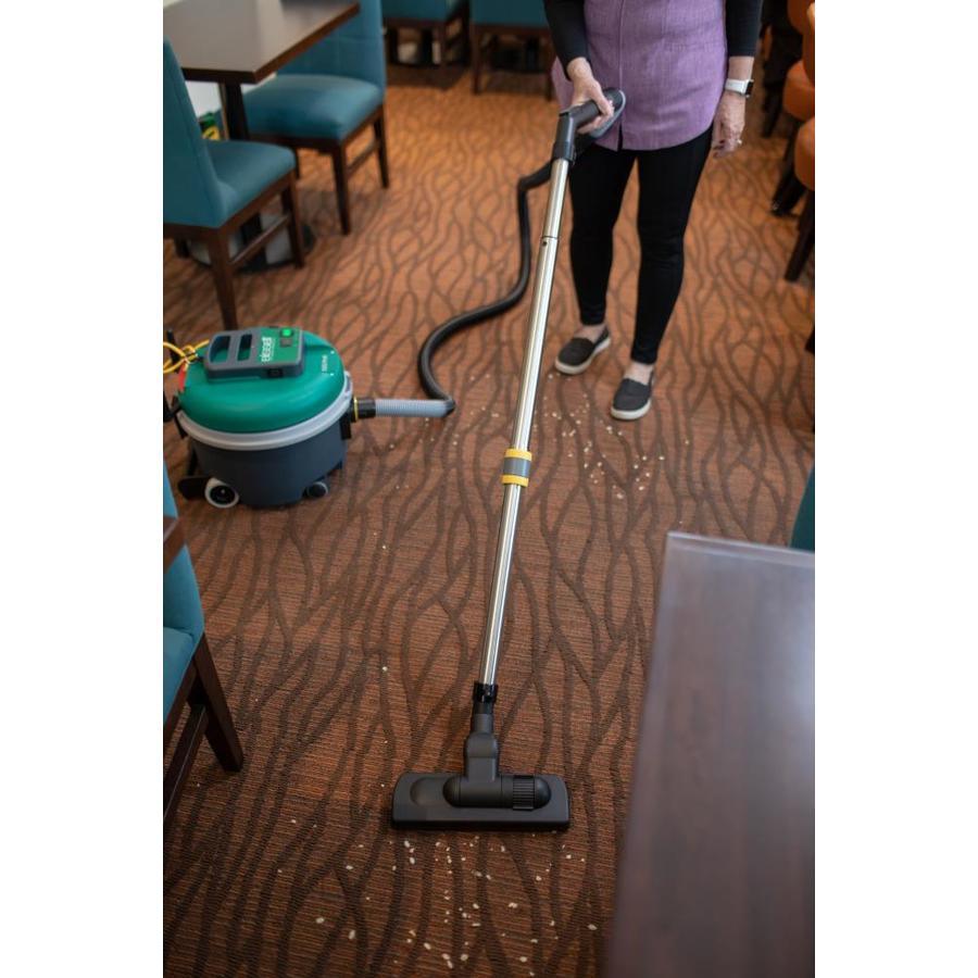 Advanced filtration canister vacuum is quiet and perfect for office settings