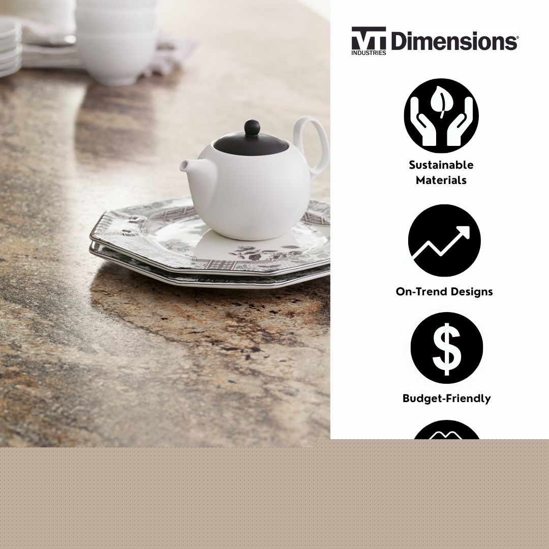 Upgrade your kitchen with the stone-look brilliance and easy-care durability of this VT Dimensions laminate countertop today.
