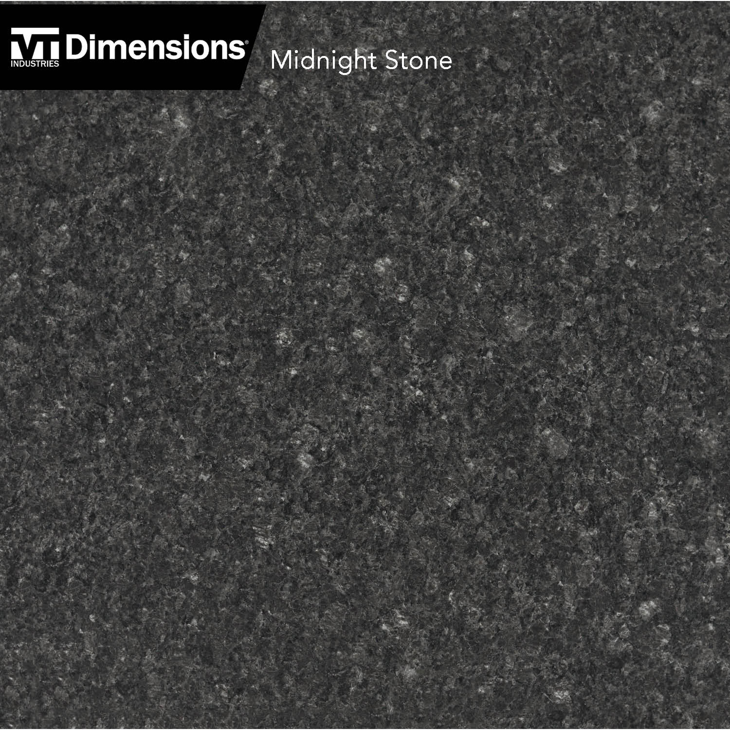VT Dimensions’ 10‑ft laminate countertop features the Formica Midnight Stone pattern in a durable Etchings finish, complete with an integrated backsplash. The Afton full-wrap edge delivers a sophisticated stone-look surface that’s stain, scratch, and scuff resistant—ideal for kitchens, laundry rooms, and workspaces.