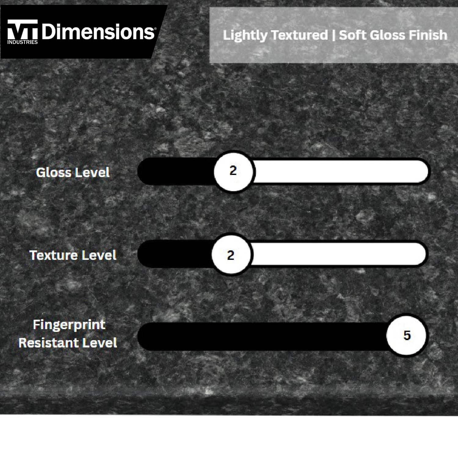 Q: What is the finish and color? A: Formica Midnight Stone 6280-46 in the Etchings finish with a natural stone-look style.