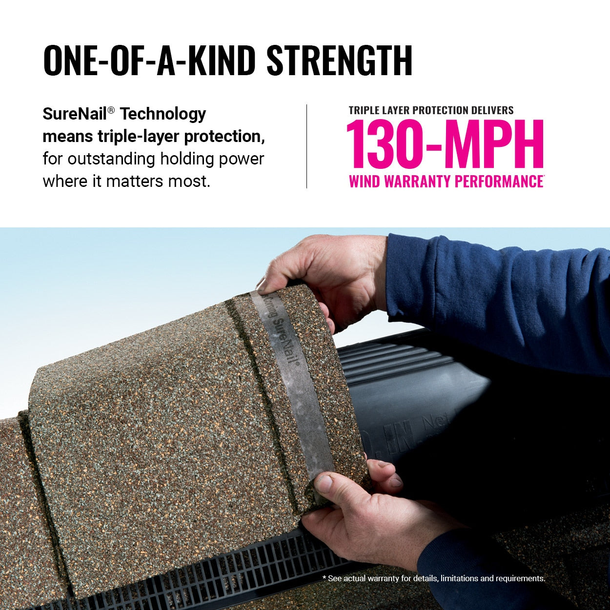 Wind and Algae Protection: Rated for up to 130‑MPH wind warranty performance with StreakGuard algae resistance