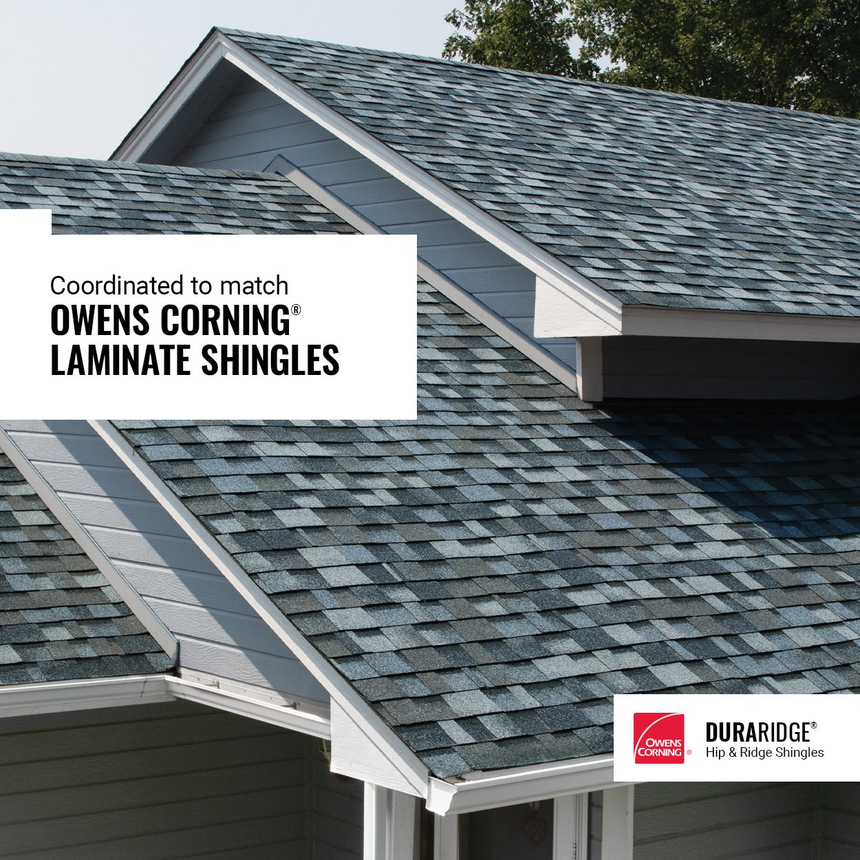 Finish roof hips and ridges with Owens Corning DuraRidge shingles in Pacific Wave. Featuring SureNail Technology and triple‑layer protection, these precut asphalt shingles deliver a bold, high-profile look with 130‑MPH wind warranty performance and algae resistance.