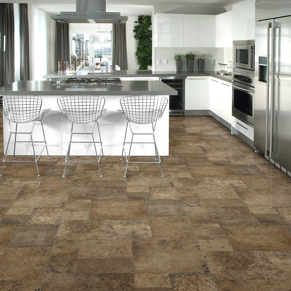 This sheet vinyl brings the rugged romance of Appalachian stone into a sleek, contemporary setting. The low-gloss, matte texture reads rich and authentic, grounding kitchens and entryways with layered warmth. Pair it with crisp white cabinetry and brushed steel accents to let the earthy palette glow. It’s a chic essential for luxurious living with practical durability.