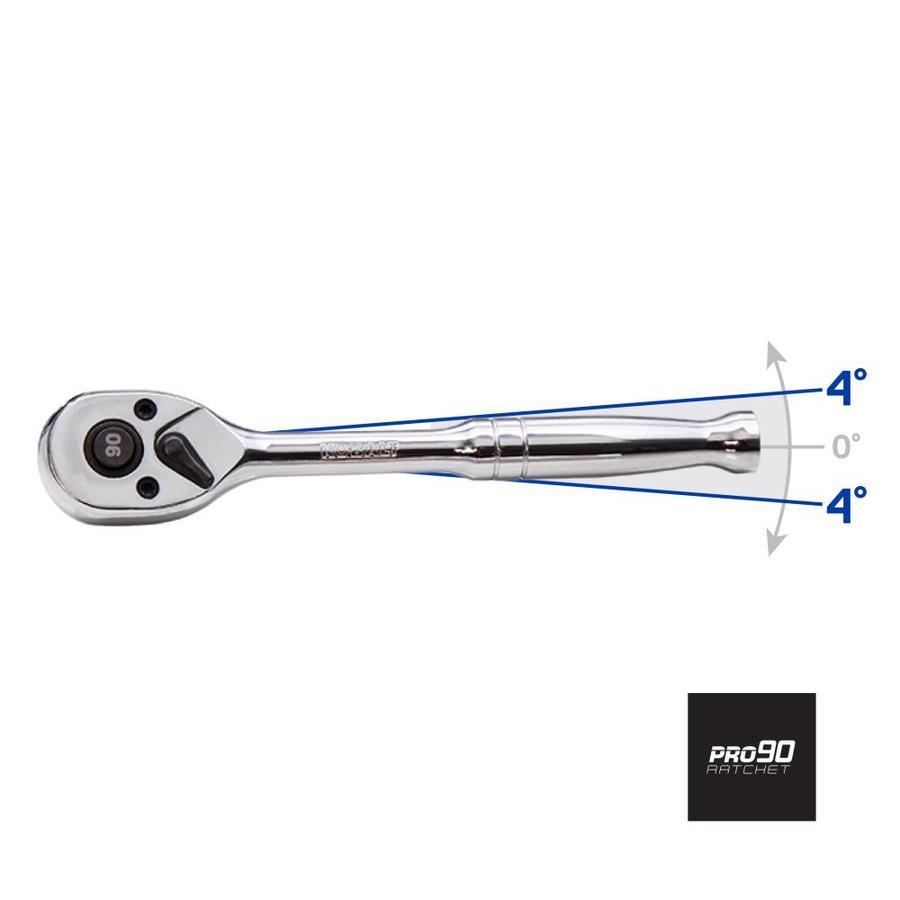Quick-release button on ratchet makes it easy to remove sockets or swap out drive tools for added convenience and versatility