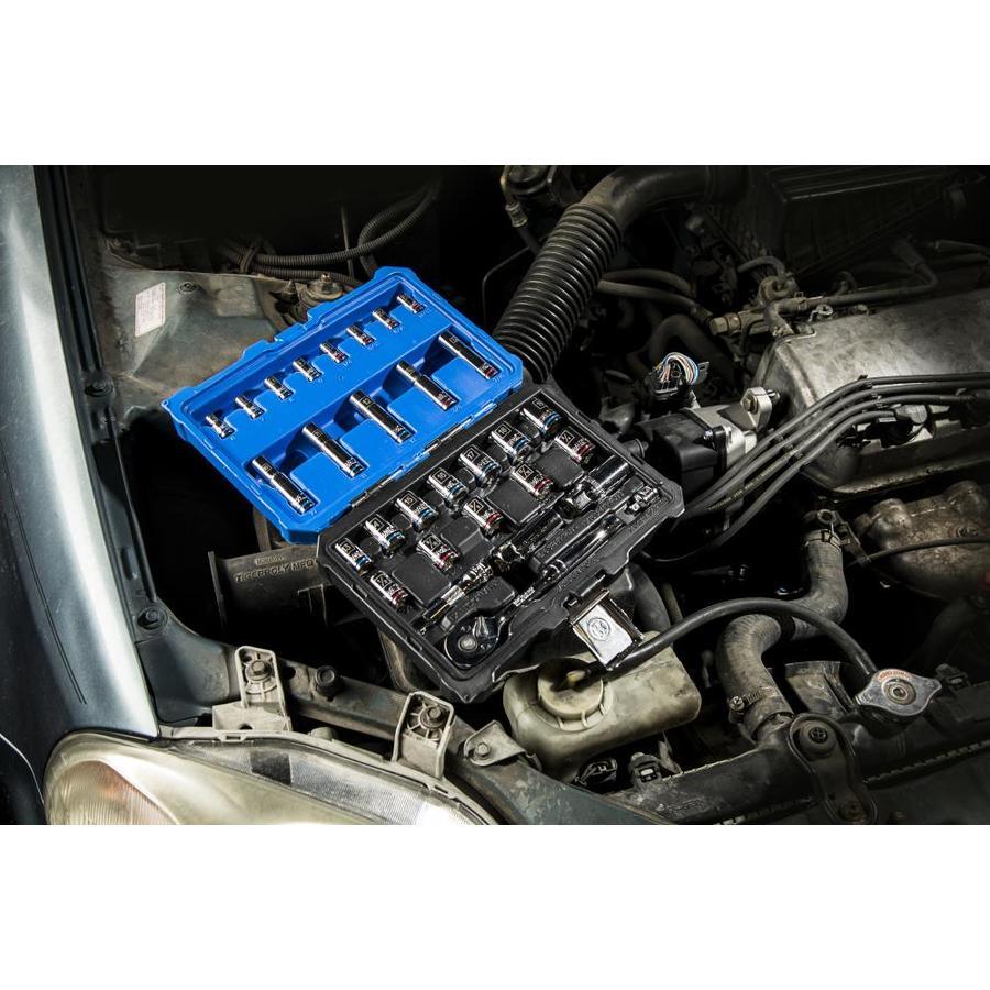 Shallow sockets can fit into tighter spaces to help you complete projects on car or motorcycle engines