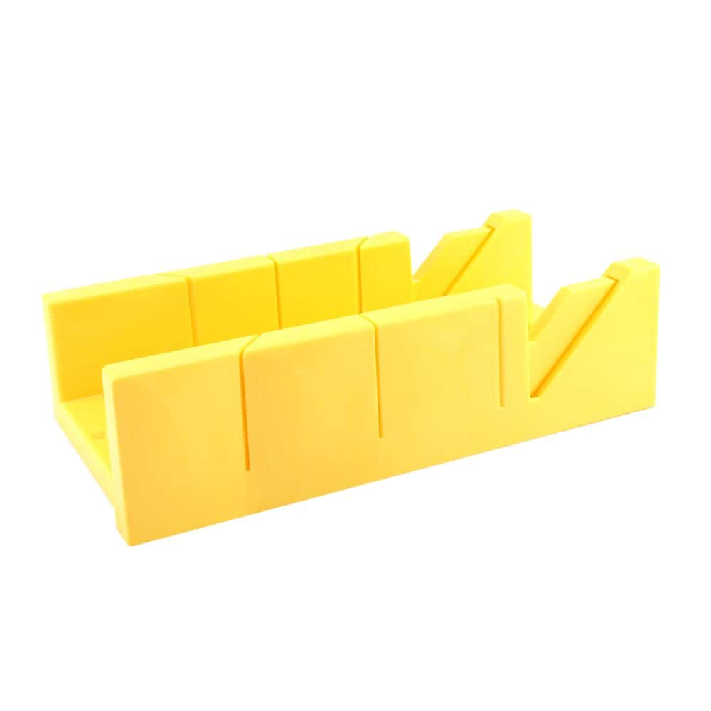 Compact miter box for accurate 45° and 90° cuts in trim, molding, and lumber. Made from impact-resistant ABS with a built-in ruled edge for quick measuring. Ideal for DIY projects and jobsite portability.