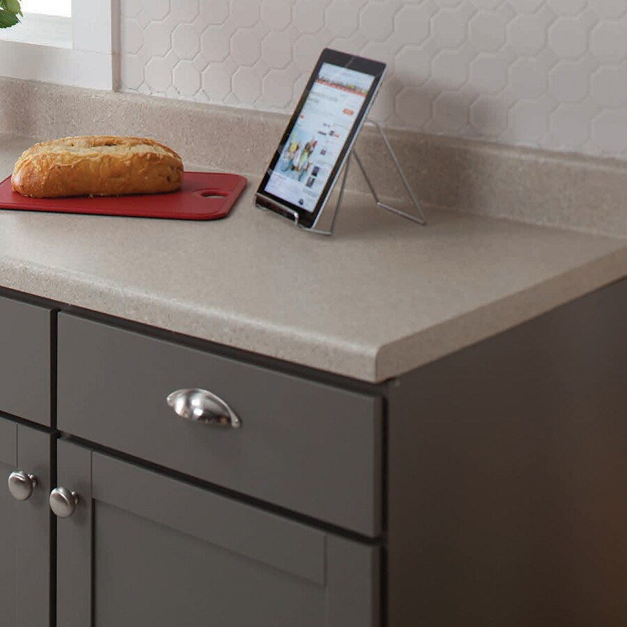 A durable Wilsonart laminate countertop with integrated backsplash and classic Tempo waterfall edge. The 6‑ft left-hand miter cut makes turning a 90° corner easy while delivering a natural stone-look finish in Kalahari Topaz.