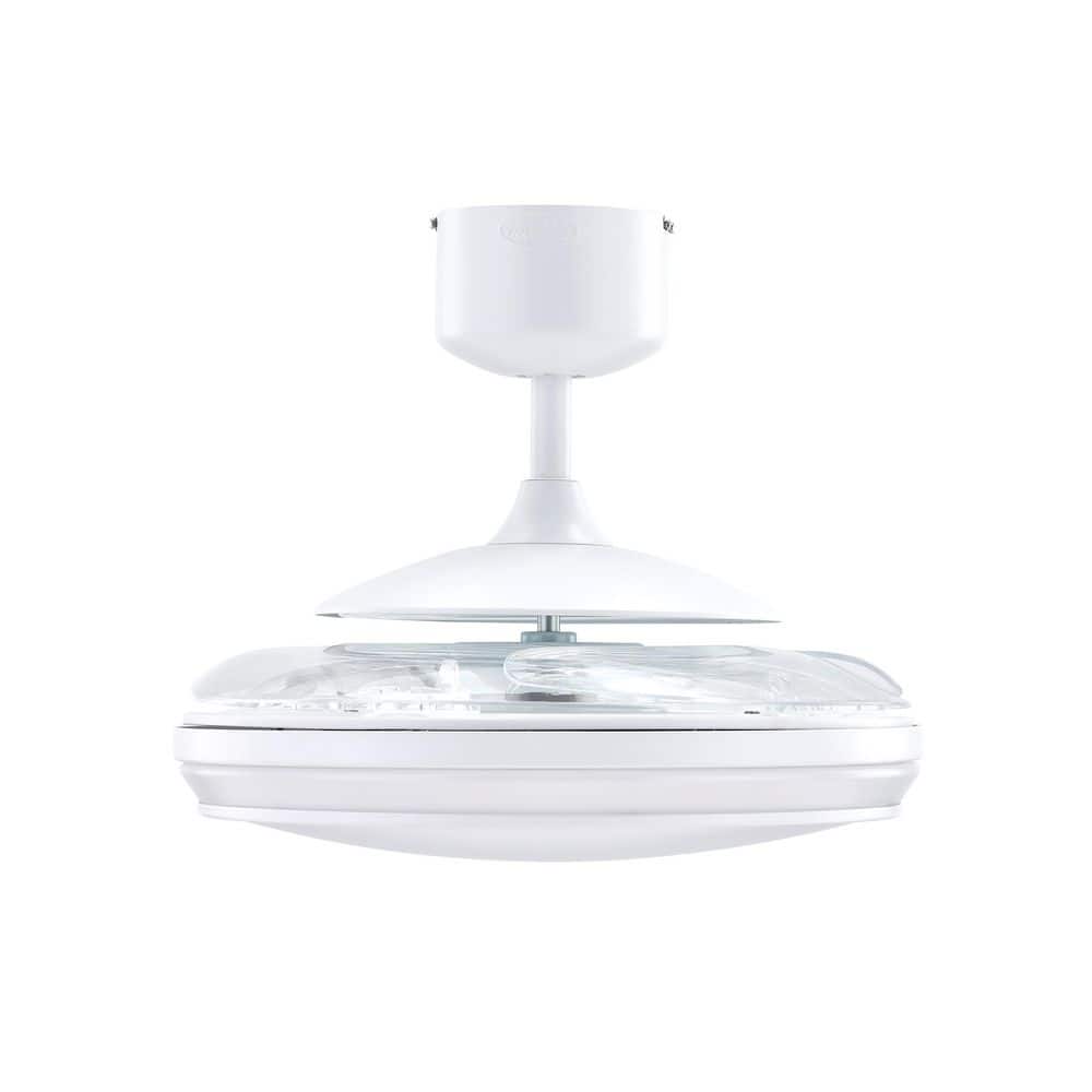 Evo1’s retractable crystal-clear blades feel like a kinetic sculpture—there when you need them, hidden when you don’t. The sleek white body and halo-like LED cast a refined, ambient glow with tunable warmth for any mood. Float it over a kitchen island or dining nook and let the streamlined form keep the room visually calm. It’s a modern essential that marries performance with polished, luxurious simplicity.