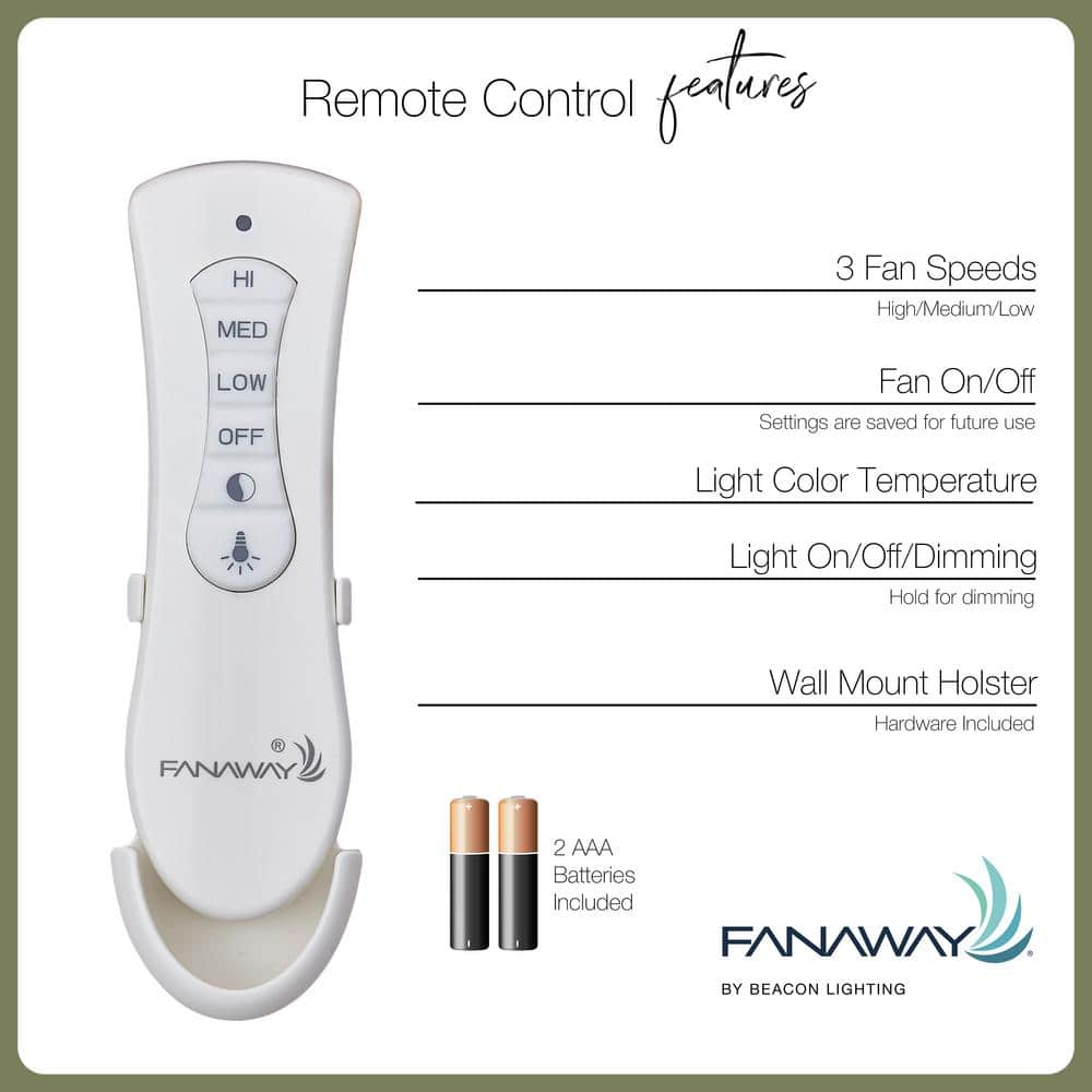 Remote Convenience: 3 fan speeds, light on/off/dimming, and color temperature control with wall holster included.