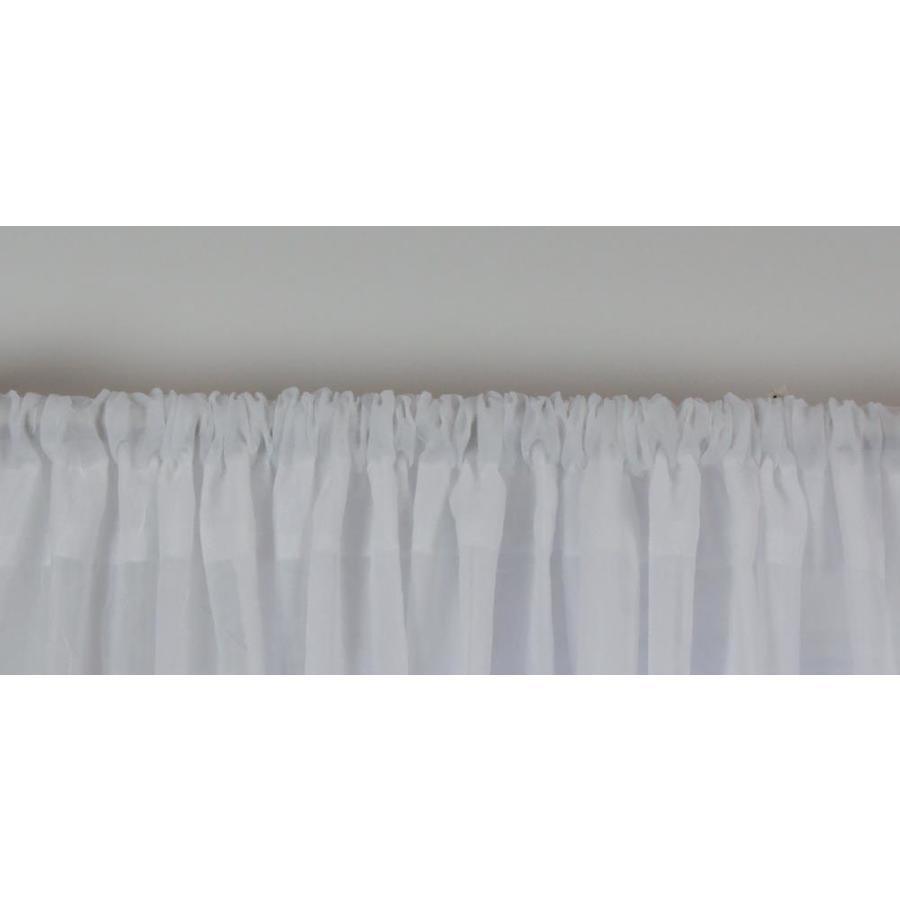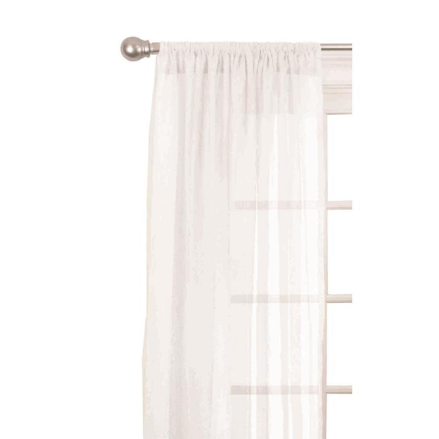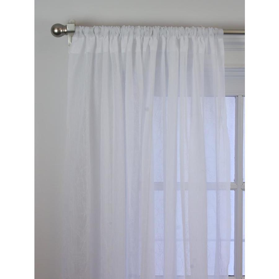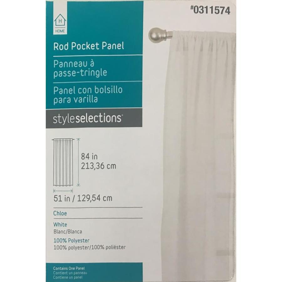 Chloe 84-in curtain is sheer and versatile enough for your living room, dining room or bedroom Solid white lightens the room and coordinates with any decor Light filtering fabric helps soften outside light and provides moderate privacy 100% polyester material offers a traditional style and is machine washable for easy upkeep Rod pocket top treatment has a sleeve that runs across the top of the panel, so you can easily slide the drapery rod through Easy to install using a 1-in to 2-in thick curtain rod or decorative rod Can be used under panels or in multiples for wider windows Single curtain panel should be purchased in pairs
