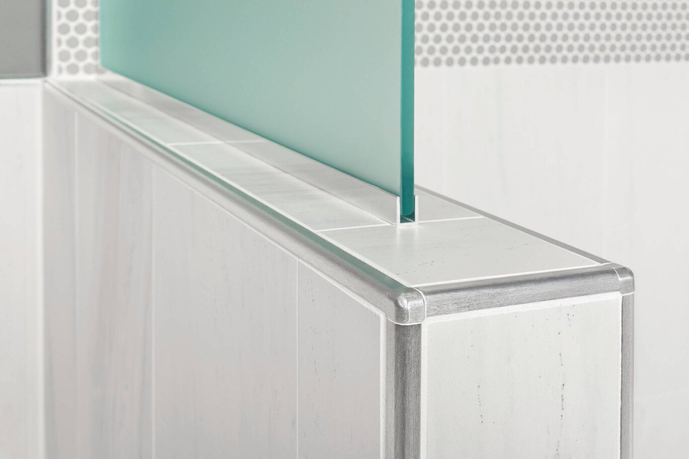 Q: Are matching corners and end caps available? A: Yes, Schluter offers inside/outside corners, sink corners, connectors, and end caps to complete the installation.