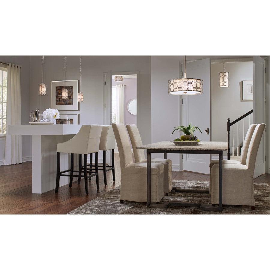 Sabine’s geometric lattice wraps an etched glass drum in a whisper of brushed nickel, casting a warm, diffused radiance that flatters every surface. The standout metal cage adds a sculptural rhythm—graphic yet effortlessly refined. Style it above a dining table or entry for a chic focal point; echo the motif with metallic accents or patterned textiles. It’s a quietly luxurious essential that elevates everyday living.