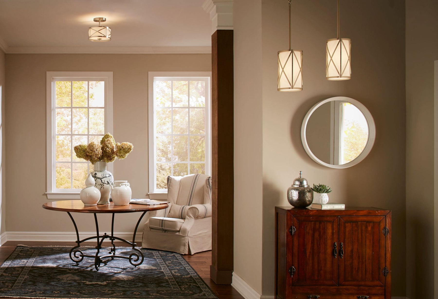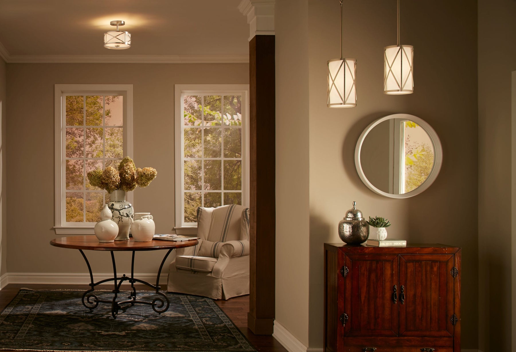 • Versatile Placement: Compact 6.5-in diameter x 11.25-in height fits over islands, bars, or entryways