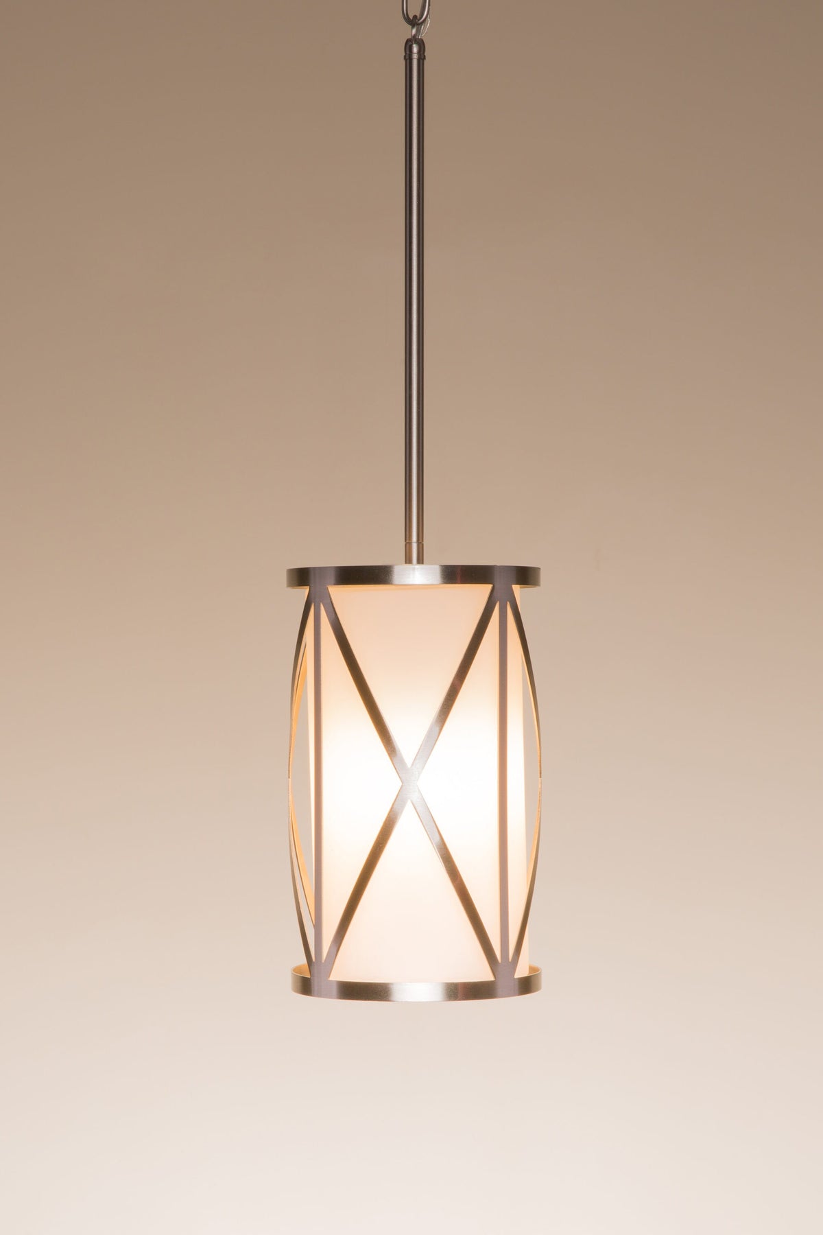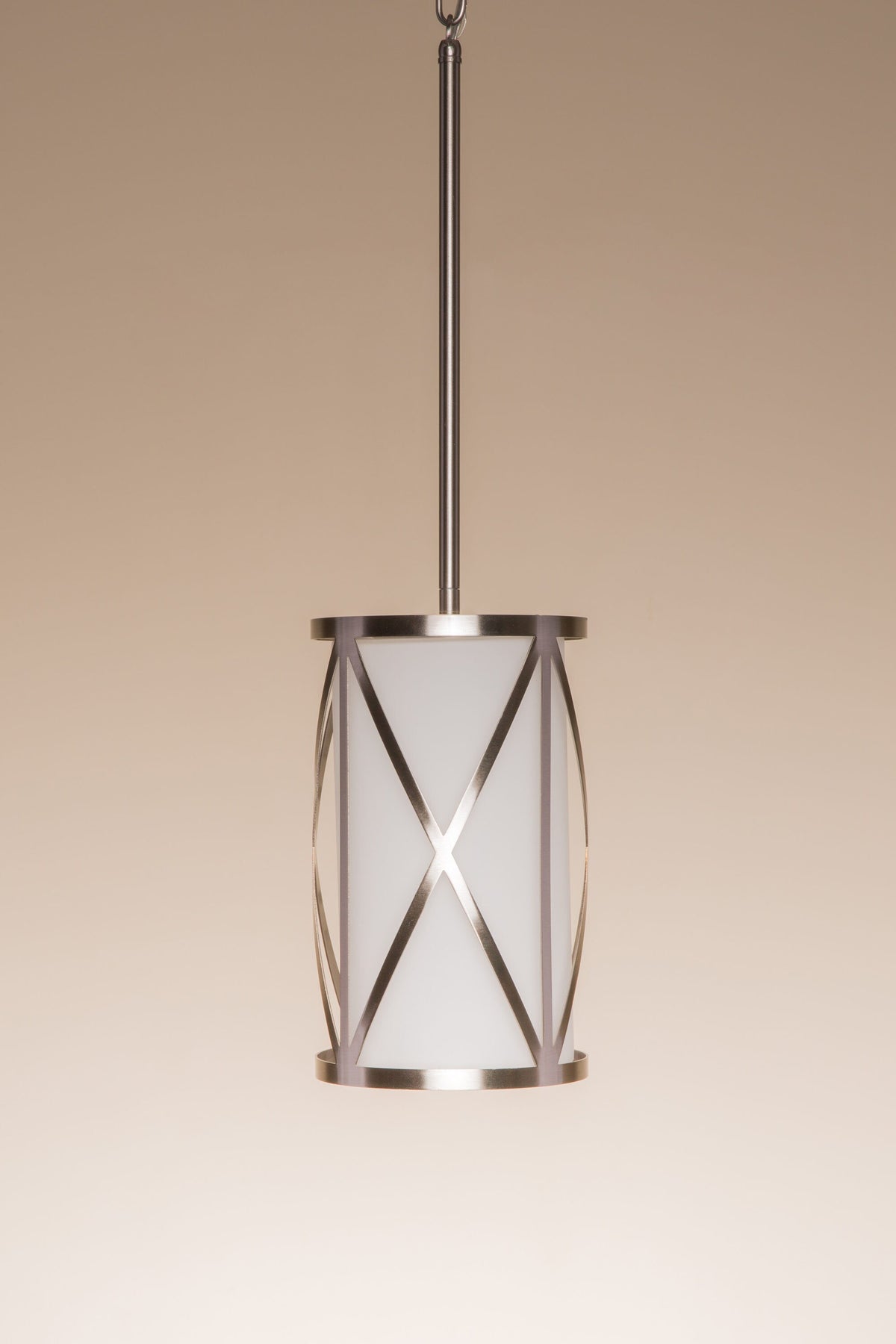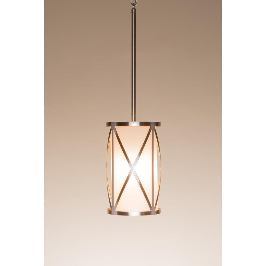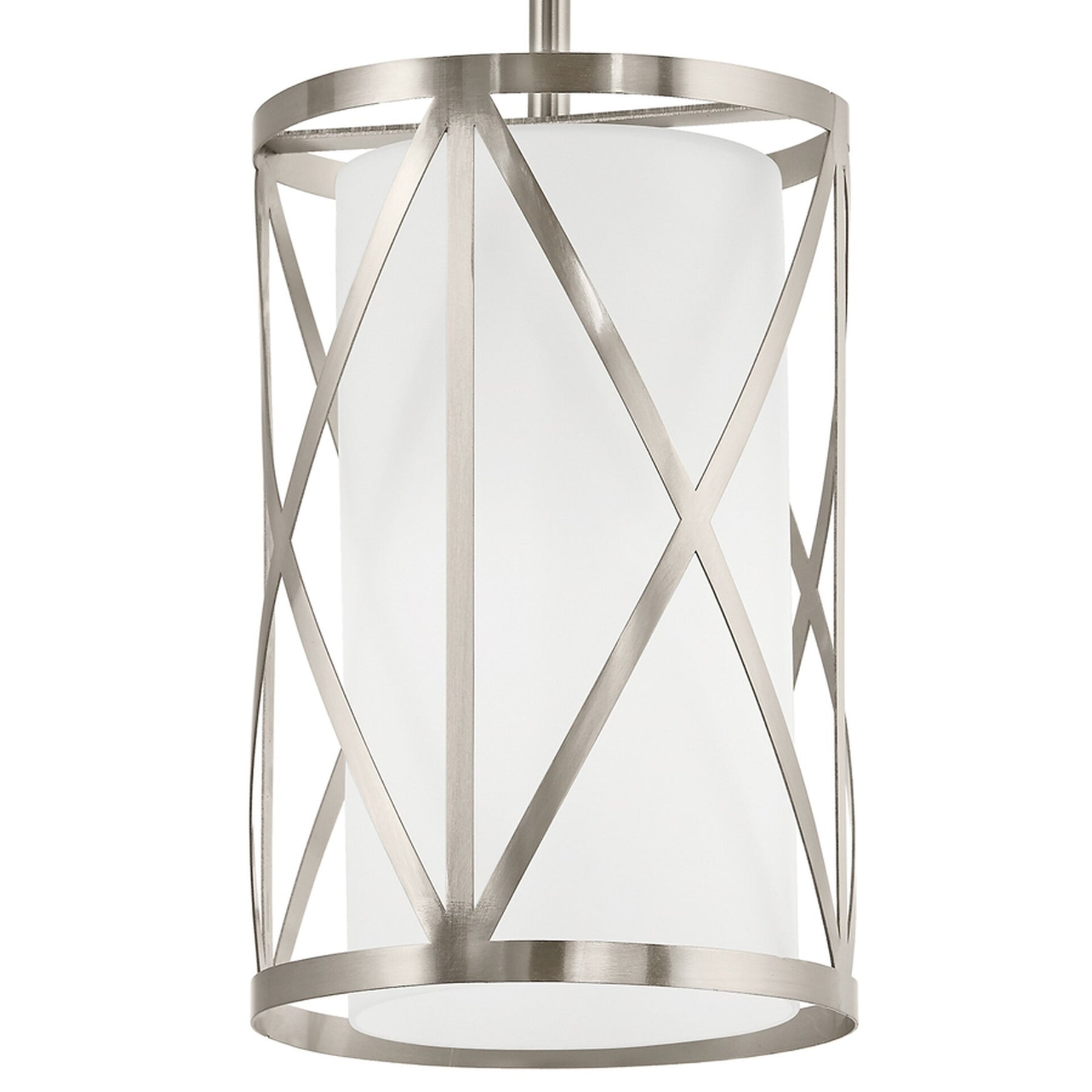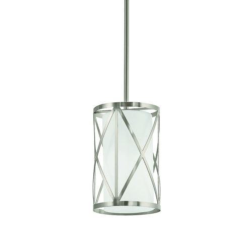 • Modern Geometric Design: Brushed nickel metal cage encases an etched opal glass cylinder for a sleek, contemporary look