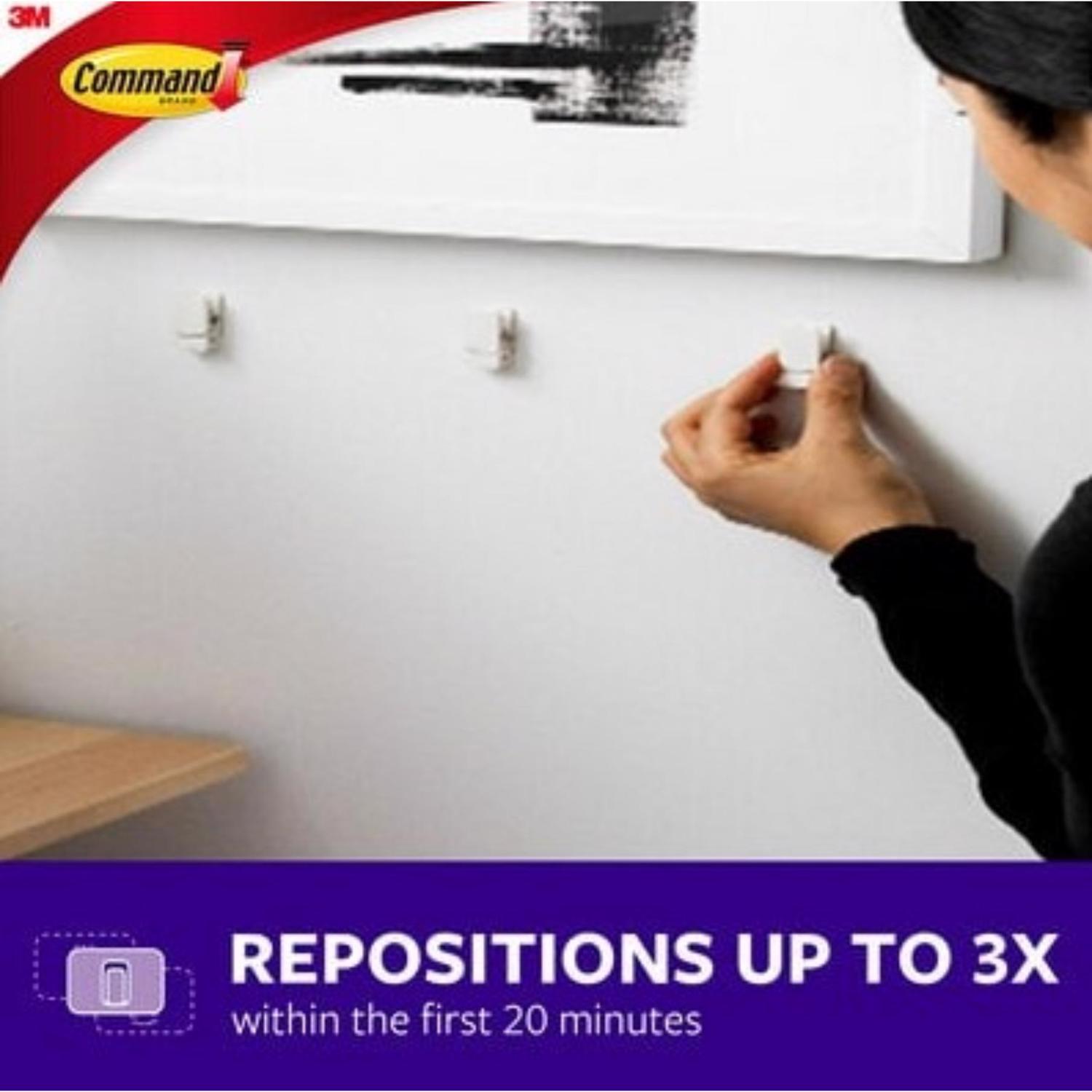 Damage-free, repositionable picture hanging solution from 3M. These Command Adjustables clips and strips hold up to 1 oz each, adhere to multiple indoor surfaces, and can be repositioned up to three times within the first 20 minutes.