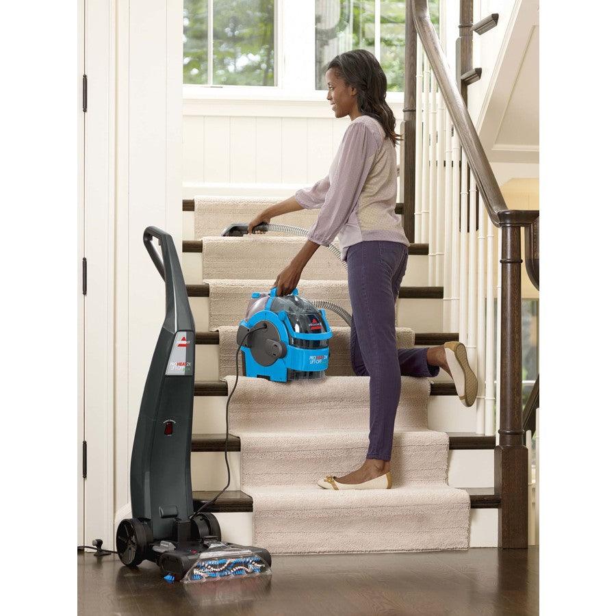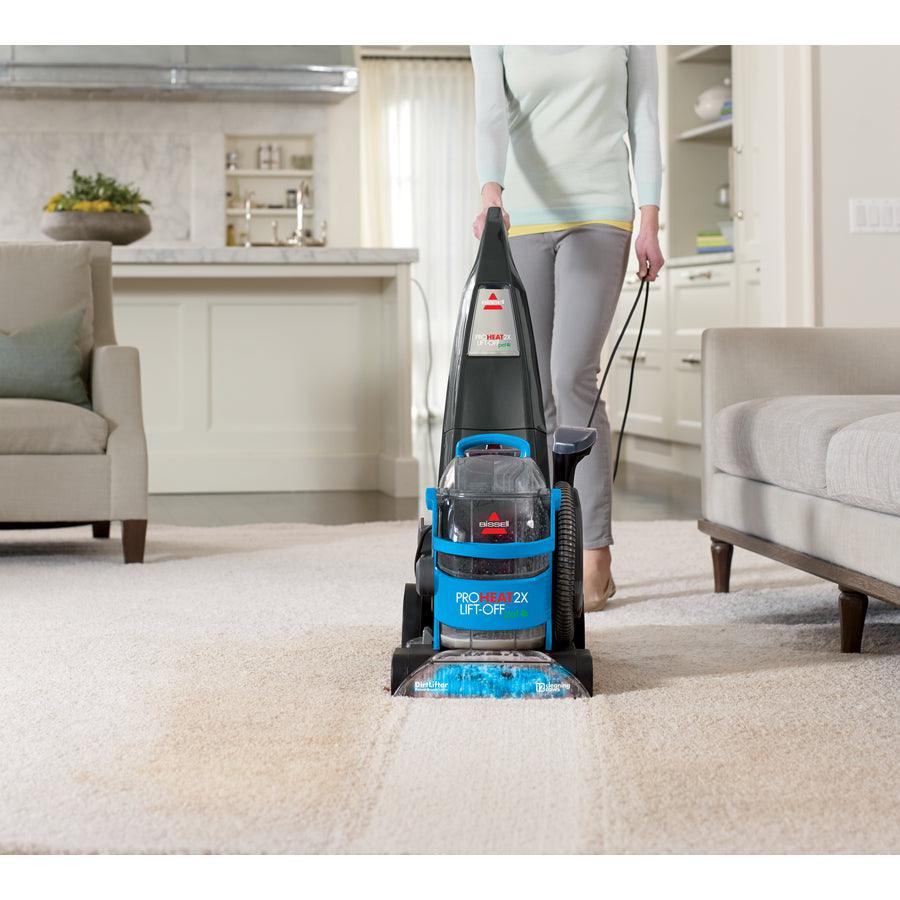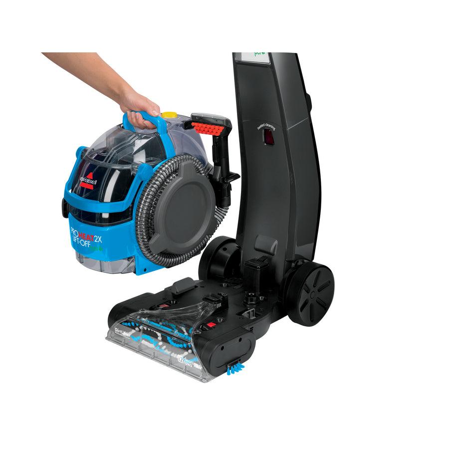 BISSELL carpet shampooer from the ProHeat 2X LiftOff Pet series features a 2-in-1 design with an upright deep cleaner for full rooms and a detachable, portable deep cleaner for stairs, furniture, cars and more