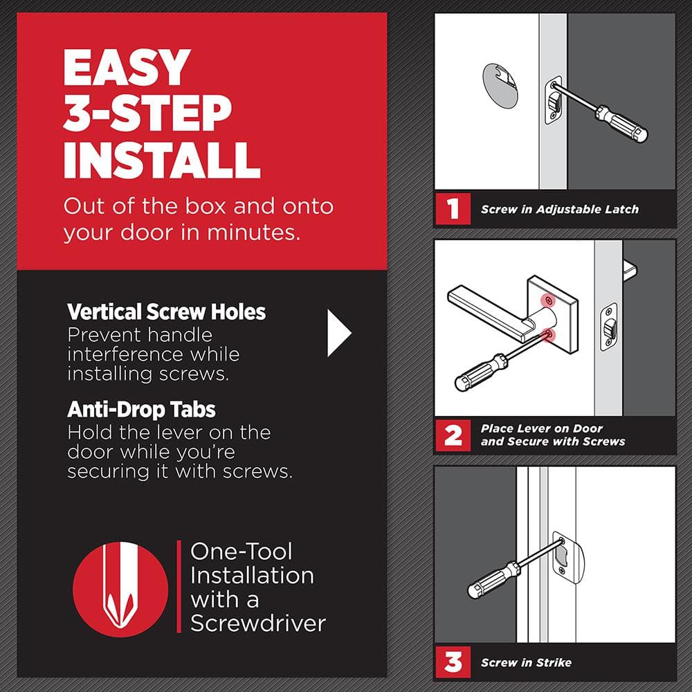 • Adjustable Latch: Fits standard doors with 2-3/8 in or 2-3/4 in backset