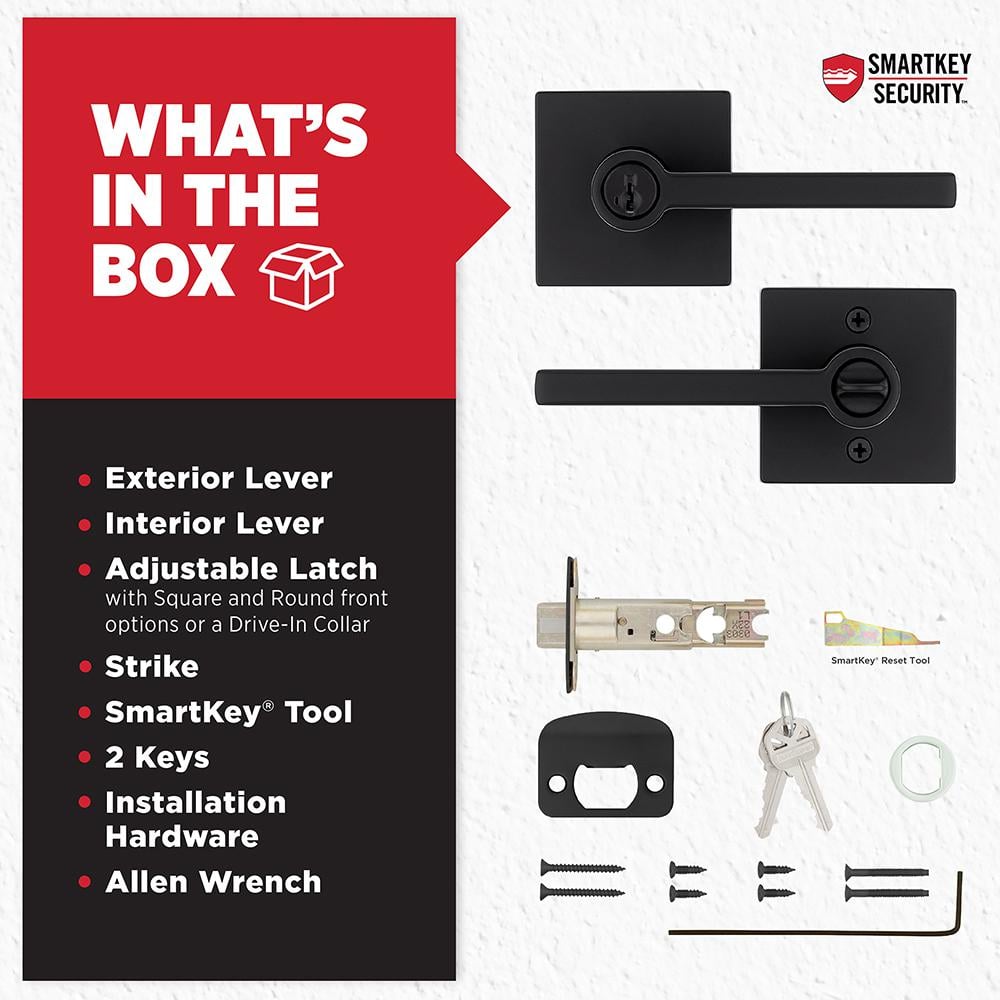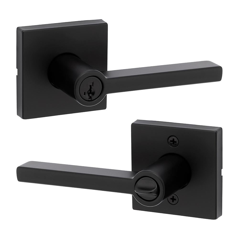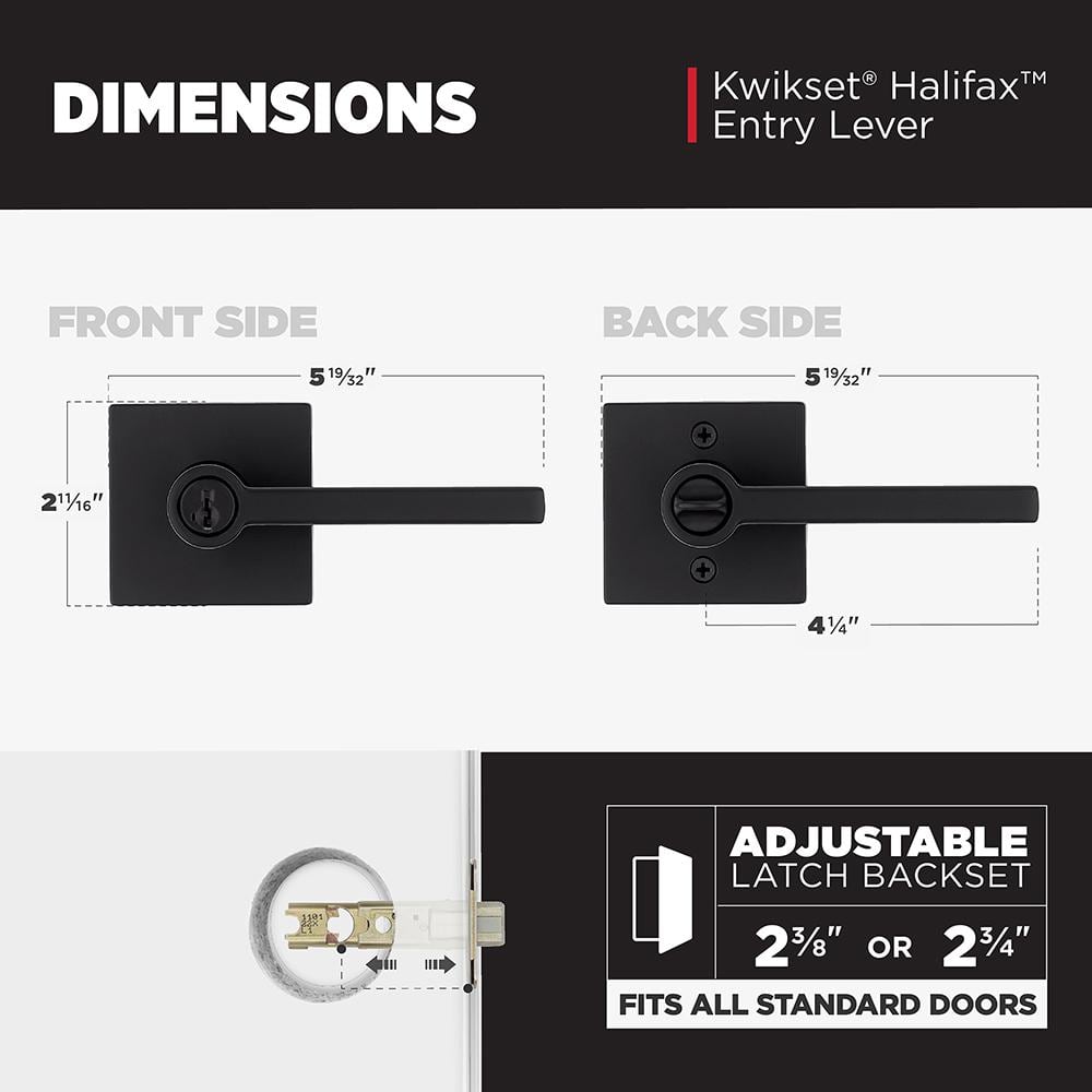 The Kwikset Halifax keyed entry lever delivers contemporary style with dependable security for exterior doors. Finished in matte black, it features SmartKey Security for DIY re-keying and an adjustable latch to fit standard doors.
