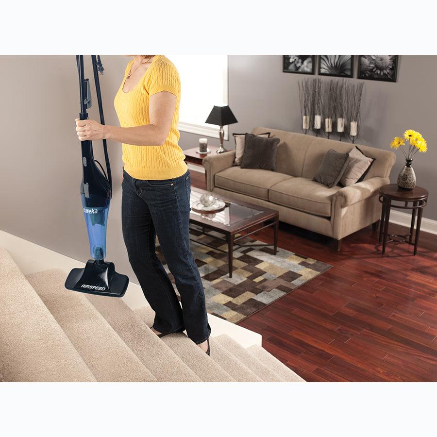 Bagless stick vacuum is designed to clean bare floors and other home surfaces