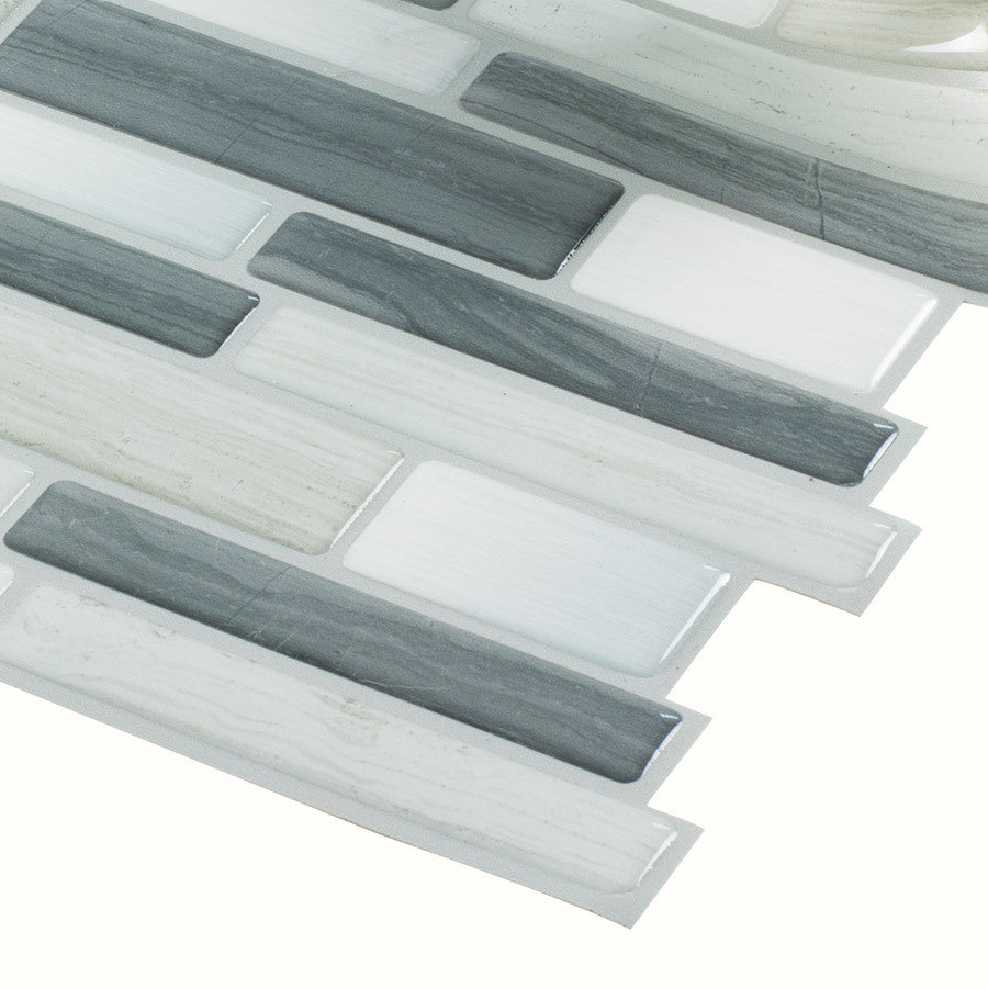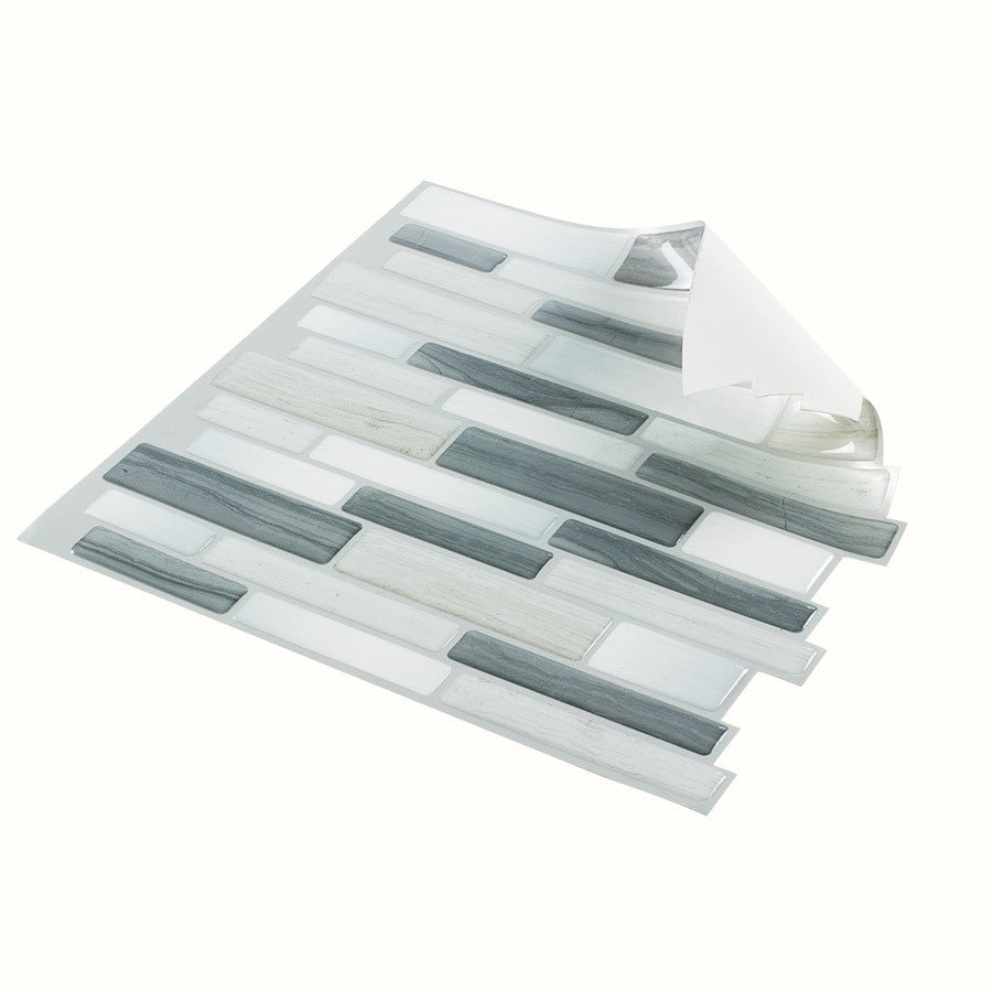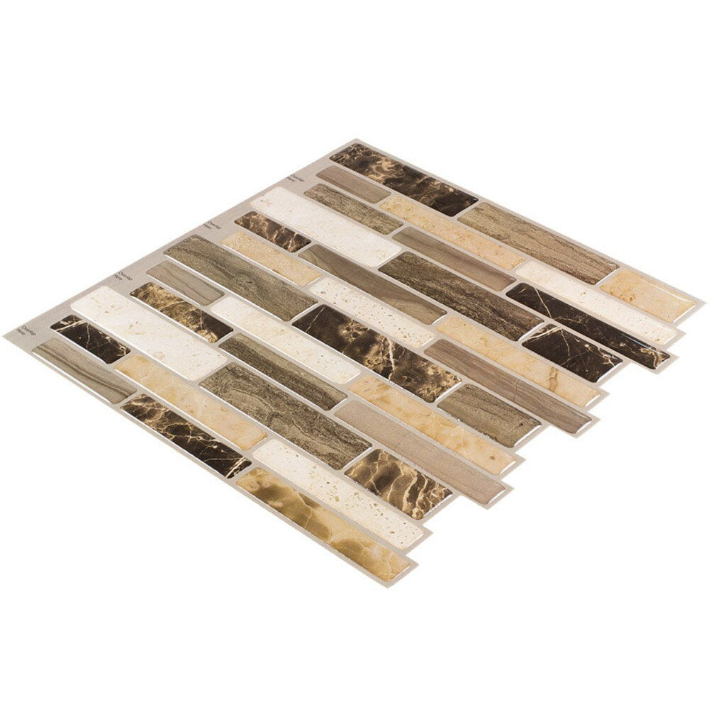 Peel & Stick tiles combine form and function, elevating your home's decor. Verona beige color and mosaic pattern are versatile and complement any design aesthetic. Always inspect tiles before installation as no claims can be made post-install. No grout or tools are needed for the easy peel-and-stick application. Perfect for indoor use, these tiles add a clean, modern touch to backsplashes and accent walls. Made in the USA with high-quality materials for long-lasting performance. Let your imagination run wild with the possibilities of using Peel & Stick.