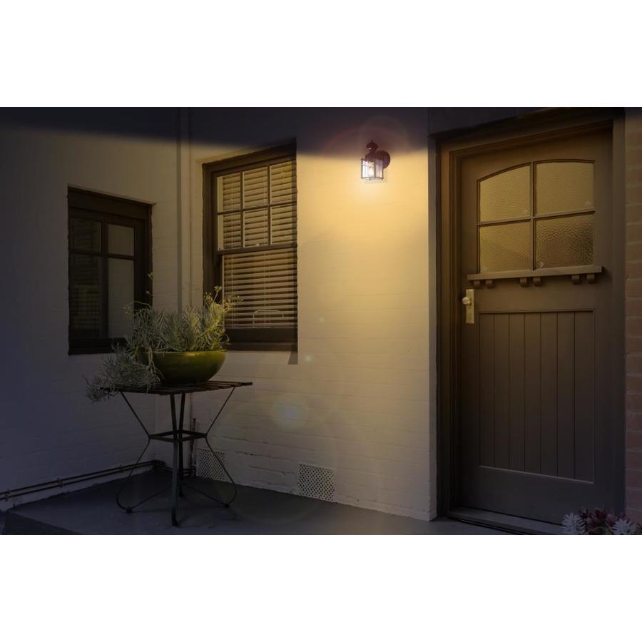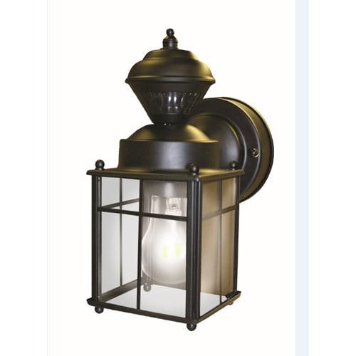 Durable metal construction Clear beveled glass 150 Degree motion sensor Up to 30 ft. detection range Uses one 60 watt medium base bulb Adjustable time options of test, 1, 5, or 10 minutes Manual override option Ideal for entranceway lighting 2-Year base warranty on the parts gives you peace of mind