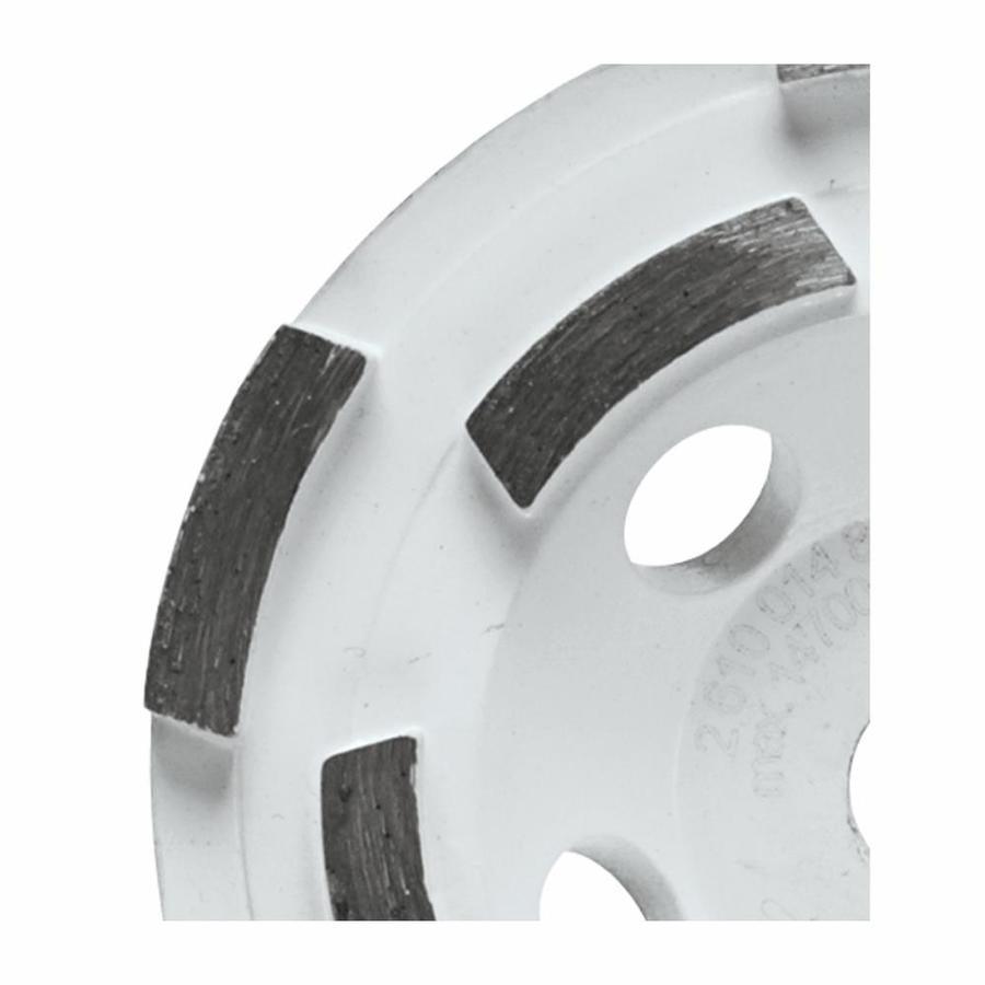 5/8 - 11 spin on arbor size for use with small angle grinders Double row segments for quick material removal Optimized bond and formula for longer life Optimized segment height minimizes dust and debris