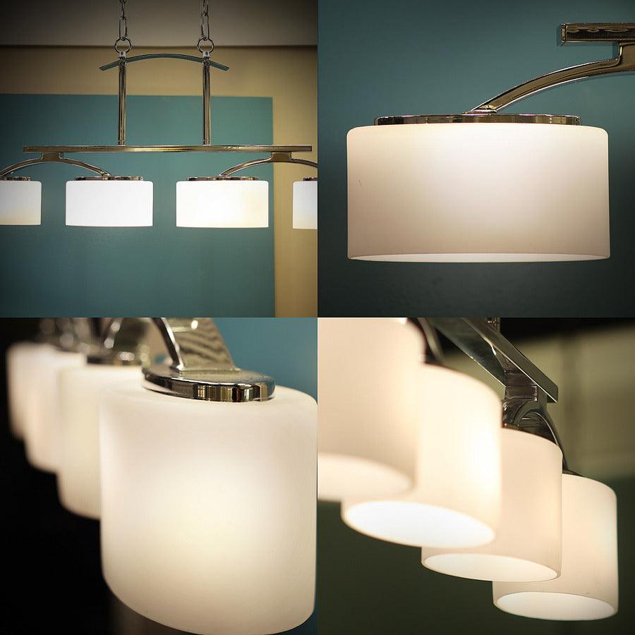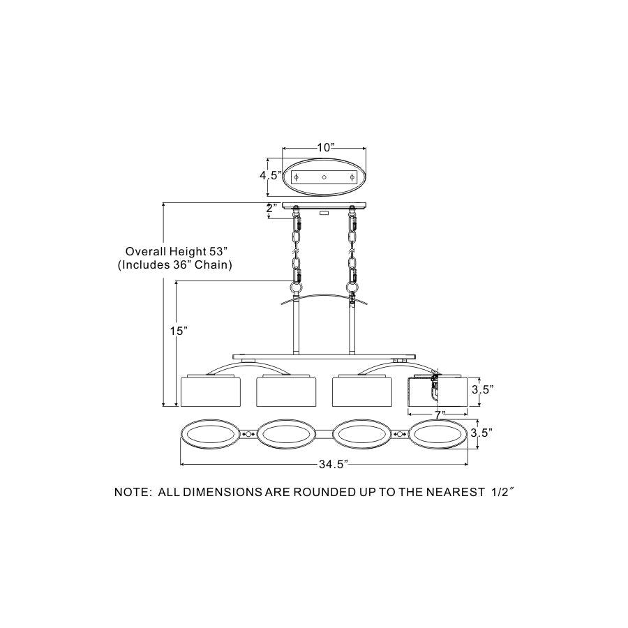 The metal frame is uniquely designed and complemented with oval-shaped, opal etched glass