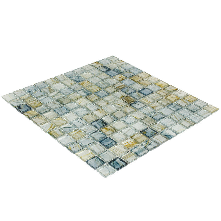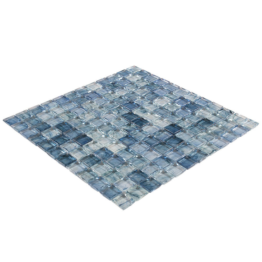 This glass mosaic washes your walls in lagoon blues, evoking the serenity of water with a polished sheen. The uniform squares create a rhythmic, architectural cadence while the swirls of color add painterly depth. Pair it with brushed nickel fixtures and pale wood tones to let the palette shimmer. A refined statement for spa-like baths and luxe kitchens alike.
