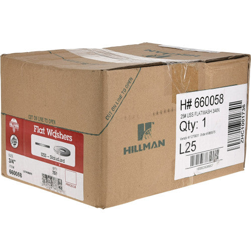 These Hillman USS flat washers distribute load and protect surfaces when used with 3/4 in. bolts or screws. Made from steel with a zinc-plated finish for moderate corrosion resistance, they help secure fasteners in wood, metal, and general construction projects.