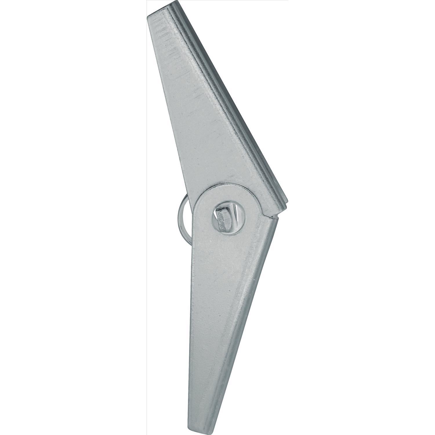 Heavy-duty zinc-plated steel toggle wings for secure anchoring in hollow walls. Designed to pair with machine screws, the spring-action wings expand behind drywall or plaster to distribute load and provide a firm, reliable hold.