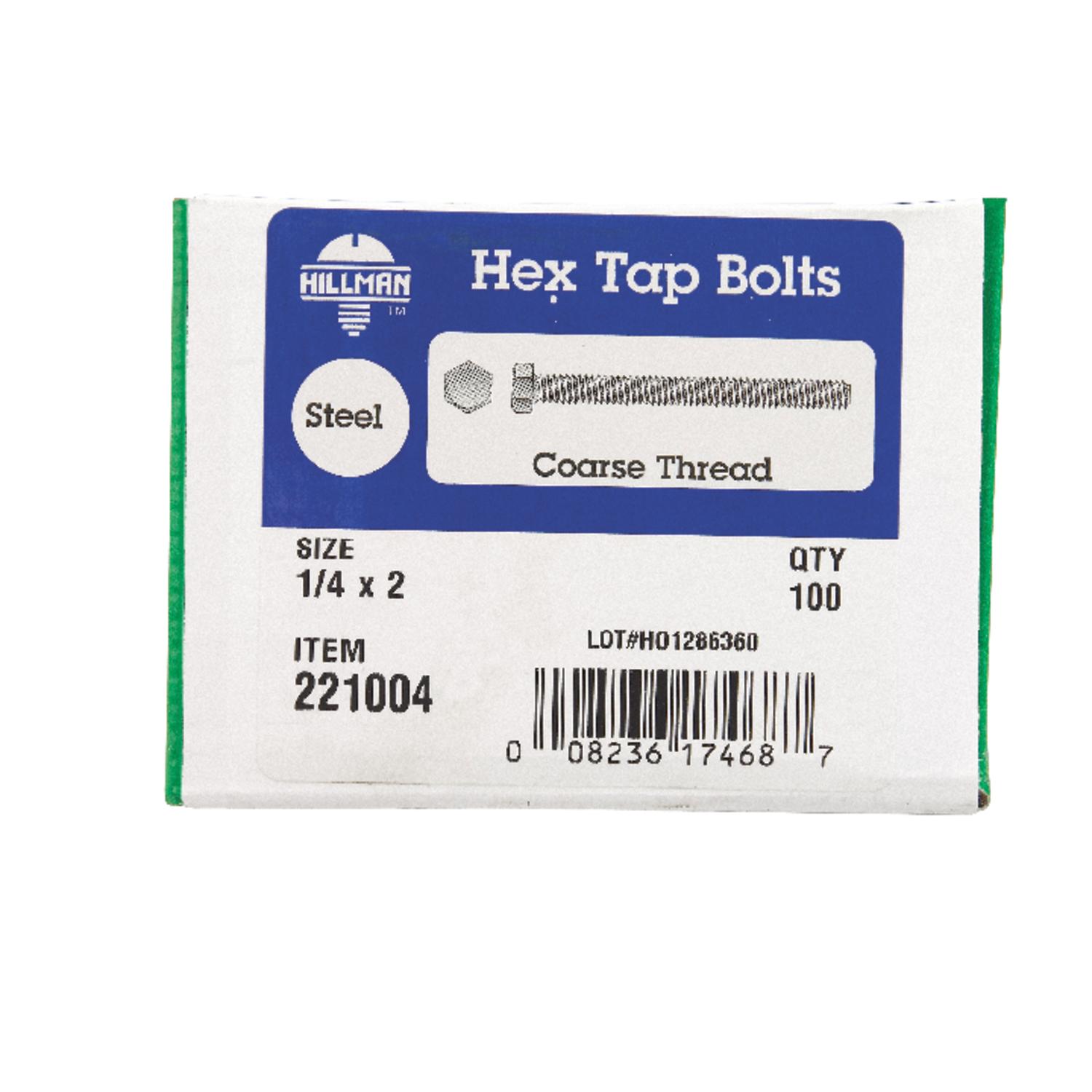 Hillman 1/4 in. Diameter x 2 in. Length Zinc-Plated Steel Hex Tap Bolt, 100-Pack