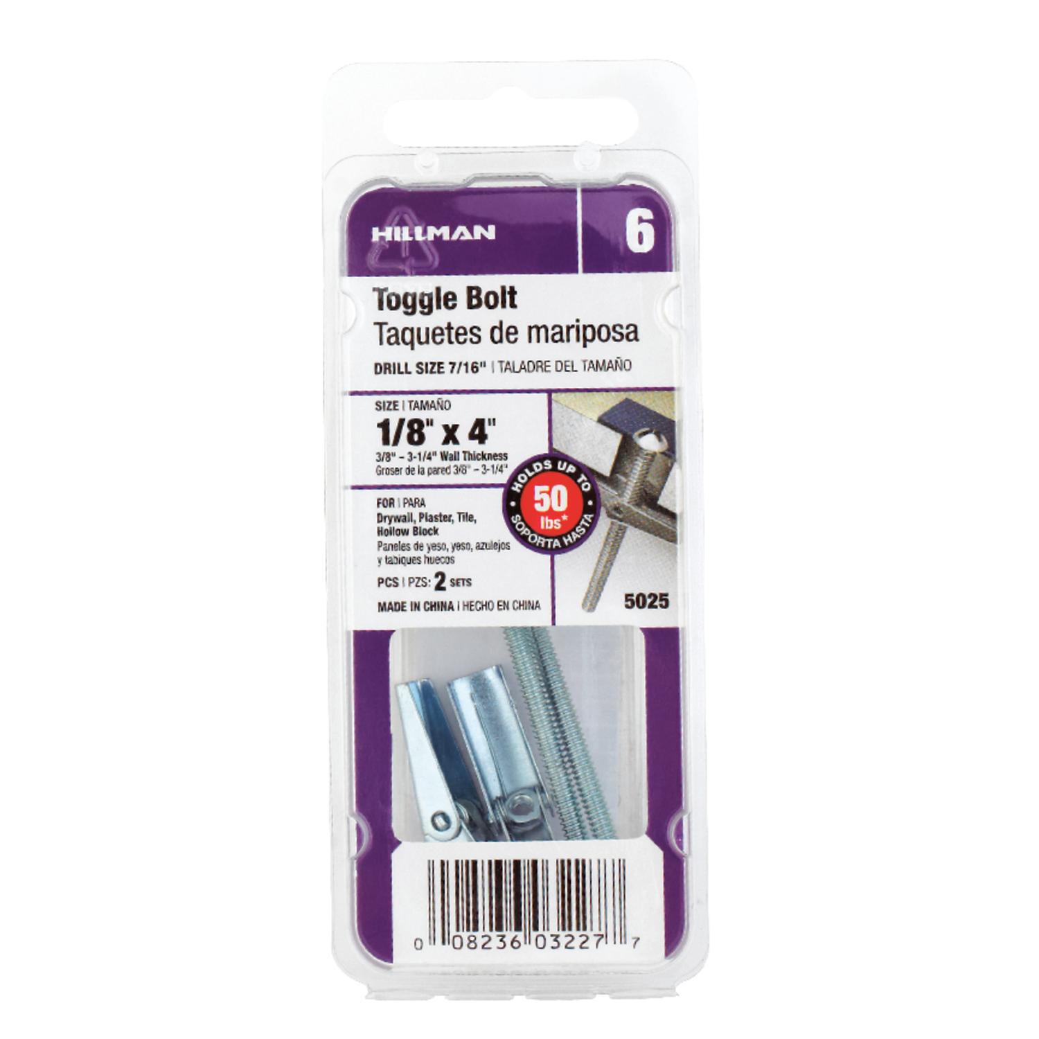 Hillman 1/8 in. Diameter x 4 in. Length Round Zinc-Plated Steel Toggle Bolt, 2-Pack