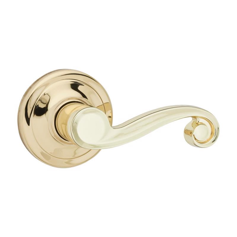 The Kwikset Lido passage lockset brings classic scroll styling in a polished brass finish to hall and closet doors. Built to ANSI/BHMA Grade 2 standards, it installs easily and fits 1-3/8" to 1-3/4" thick doors with adjustable backset.