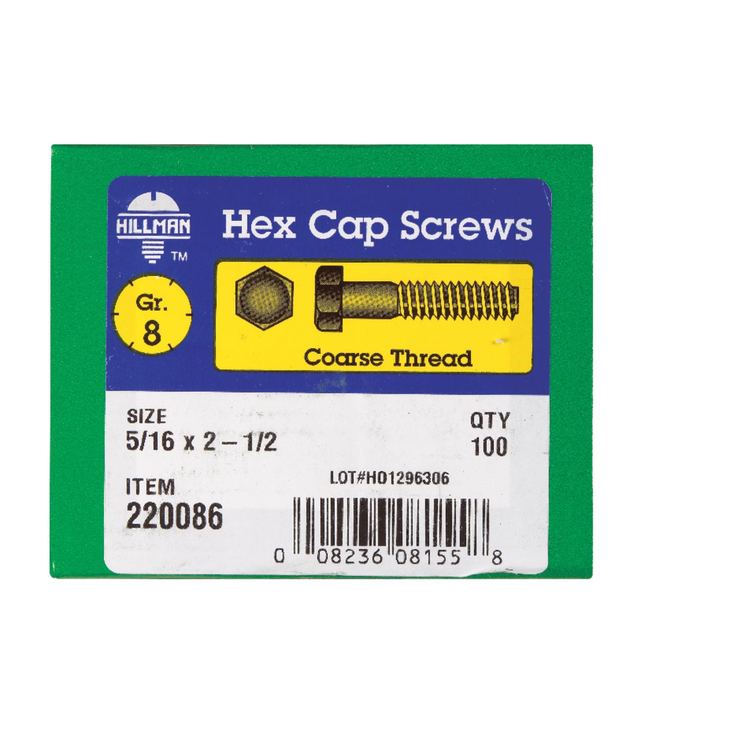 Hillman 5/16 in. Diameter x 2-1/2 in. Length Grade 8 Heat-Treated Steel Hex Head Cap Screws, Coarse Thread, 100-Pack