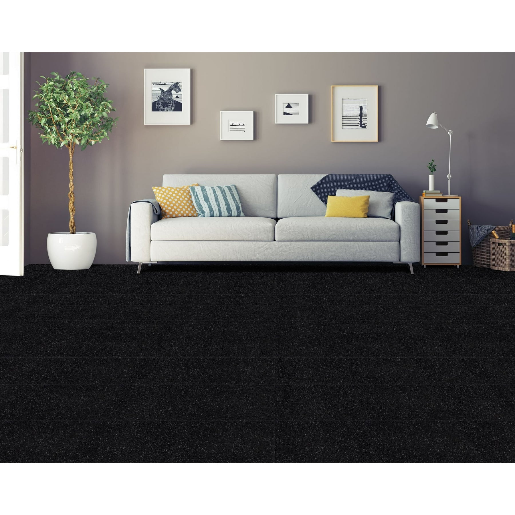 These jet-black carpet tiles bring a chic, architectural quiet to your floors, letting furnishings and art take center stage. The subtle ribbed texture adds dimension and softens acoustics, creating a refined, cocooning backdrop. Try a checkerboard with a contrast color to sculpt pathways or define a conversation zone. This is the effortless foundation for polished, luxurious living.